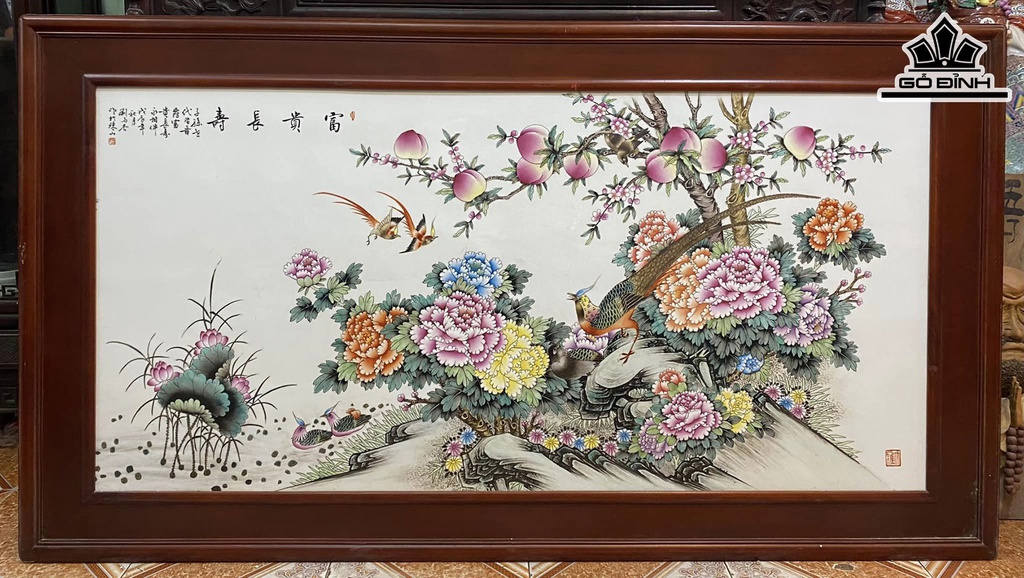 Bức Tranh Vẽ Tích Phú Quý Bạc Đầu Gốm Tàu Cao 110 Ngang 200 (cm)