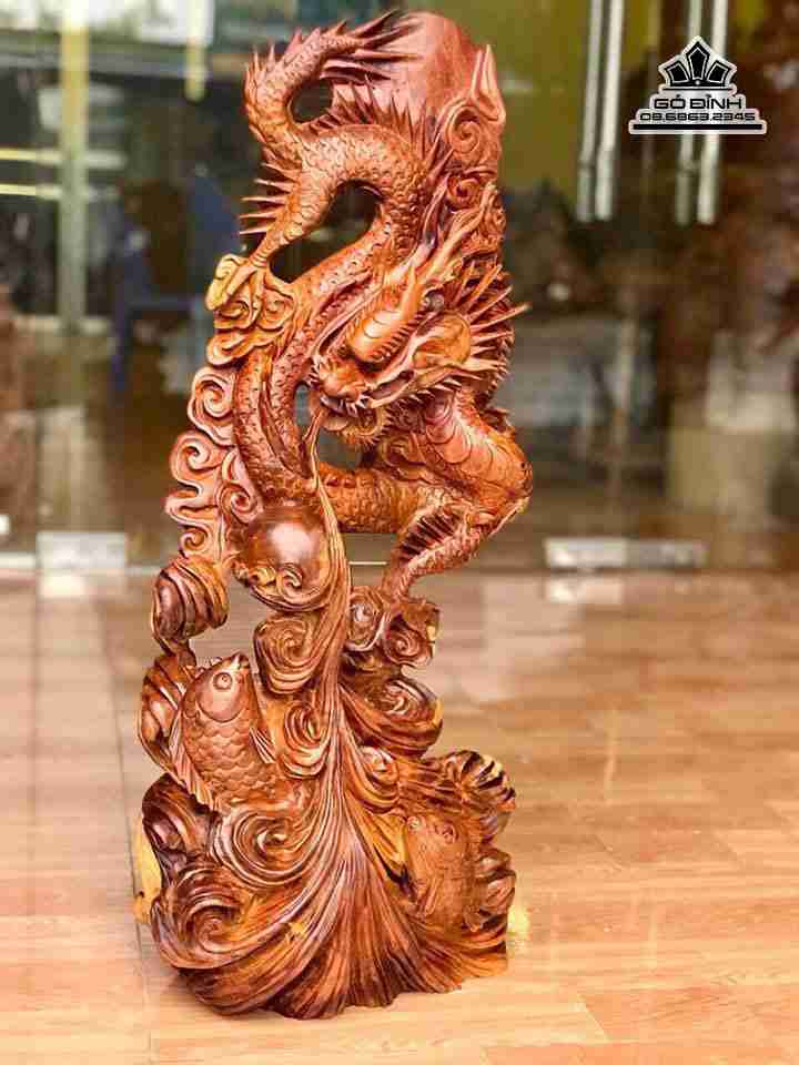 Cá chép hóa rồng gỗ hương cao 83 rộng 33 dày 18 (cm)