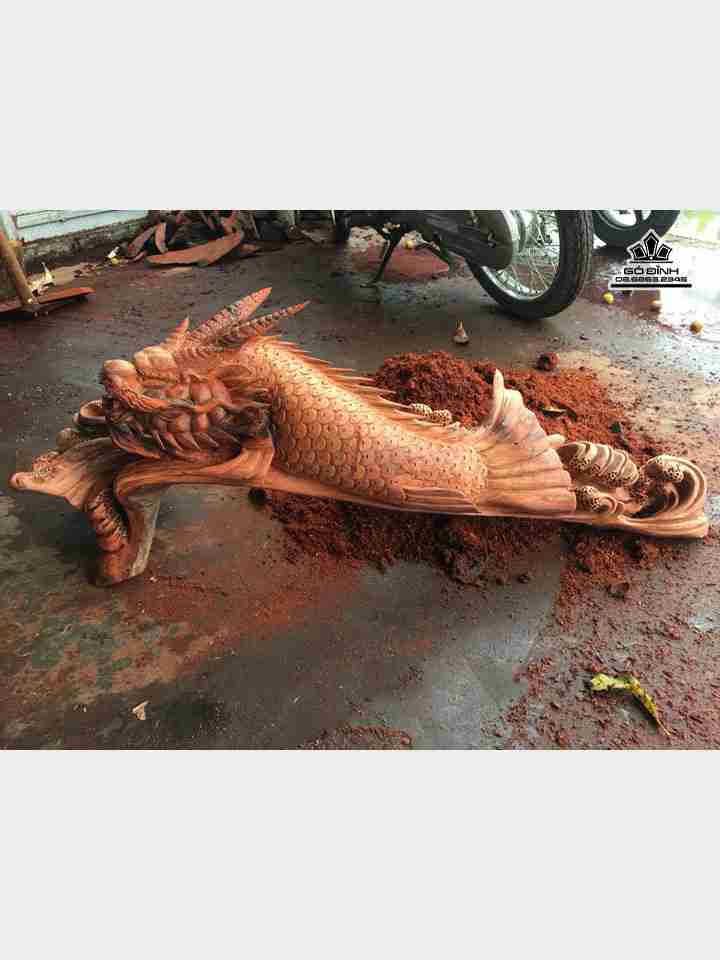 Cá chép hóa rồng gỗ hương dài 108 cao 40 dày 21 (cm)