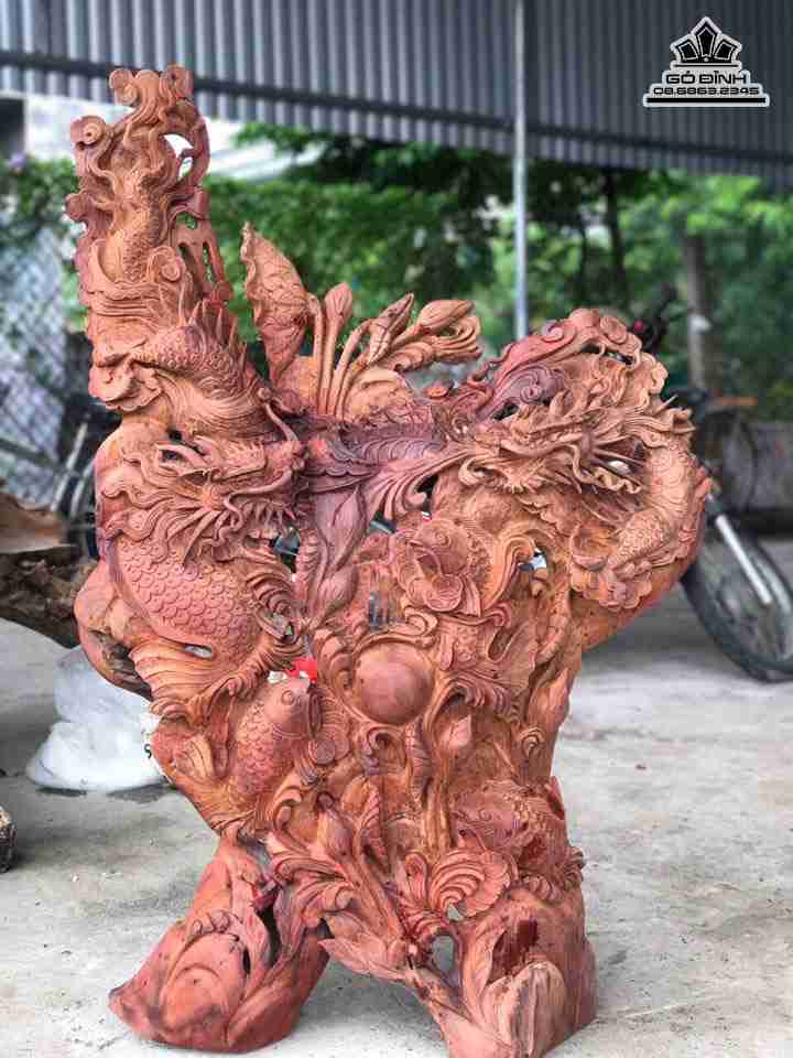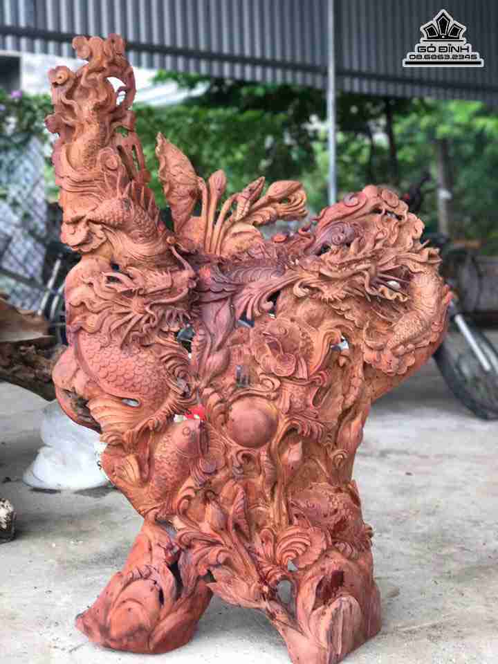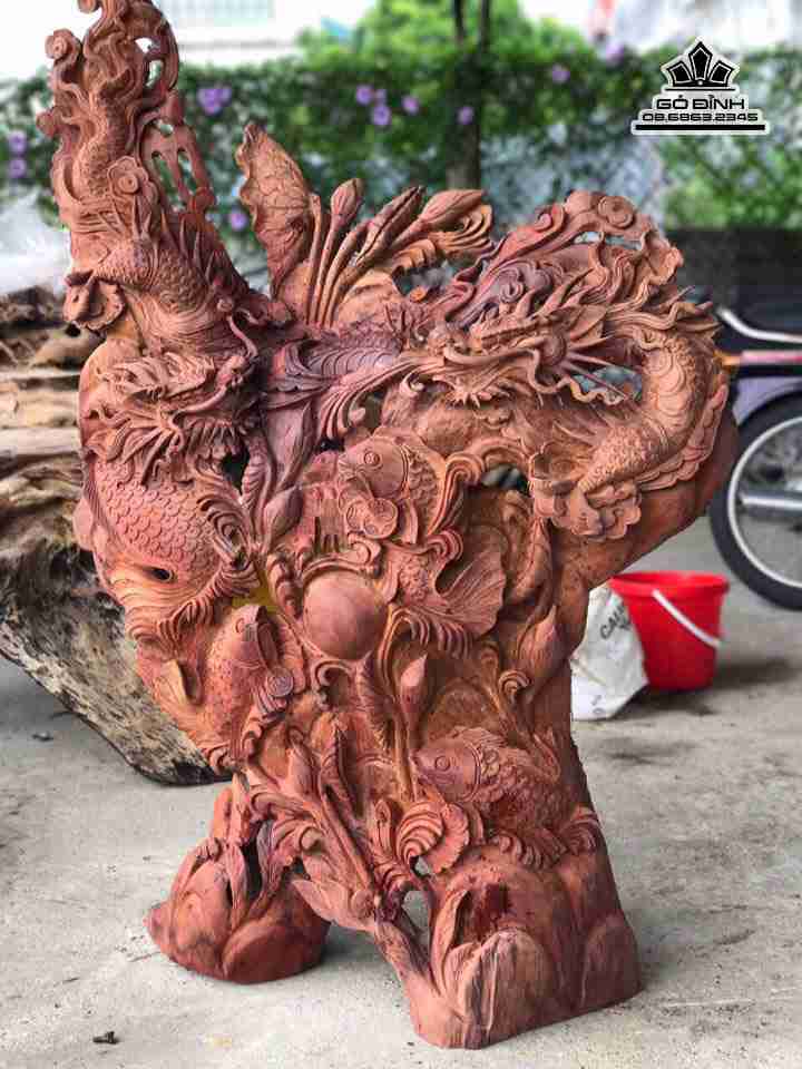 Cá chép vượt vũ môn gỗ hương cao 125 rộng 81dài 25 (cm)