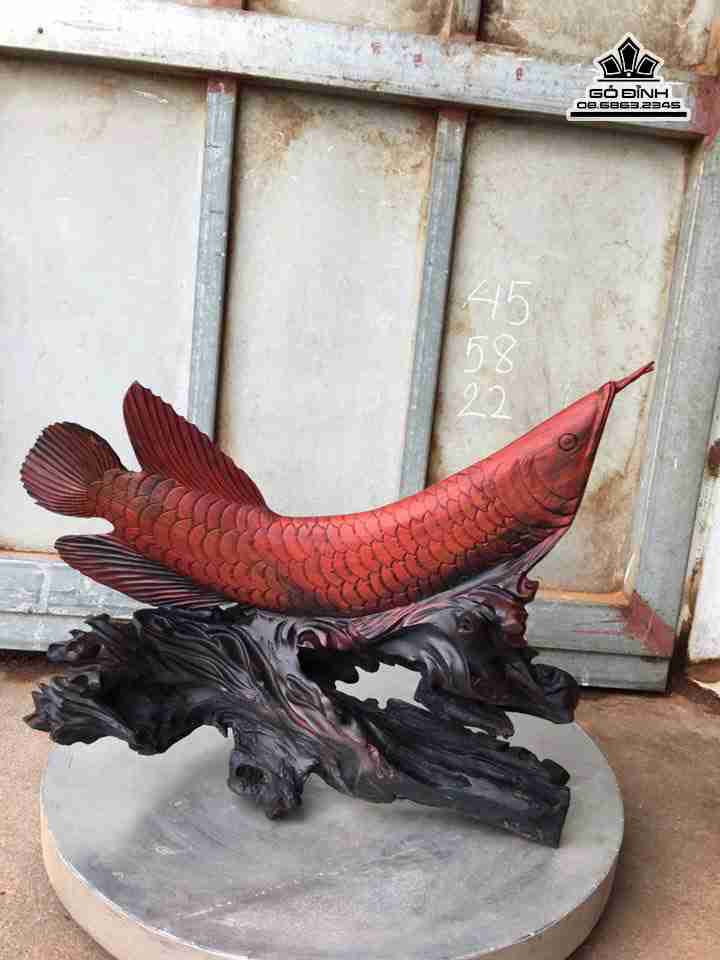 Cá kim long gỗ trắc đỏ đen cao 45 rộng 58 sâu 22 (cm)