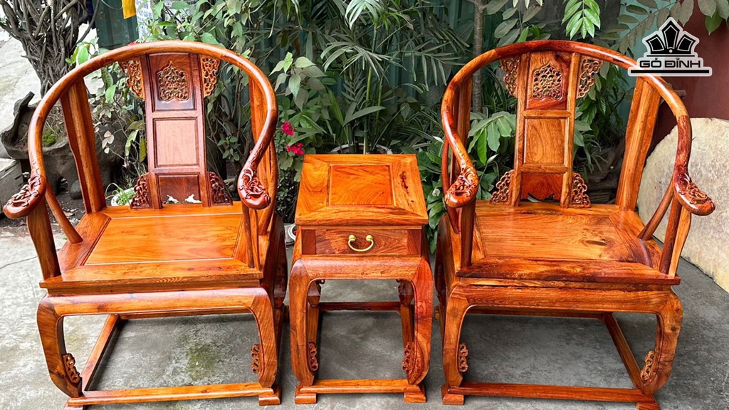 Cặp 3 Bàn Trà Minh Đế Gỗ Hương Cao 96 Rộng 60 Sâu 48 (cm) Đôn Cao 61 Mặt 48x36 (cm)