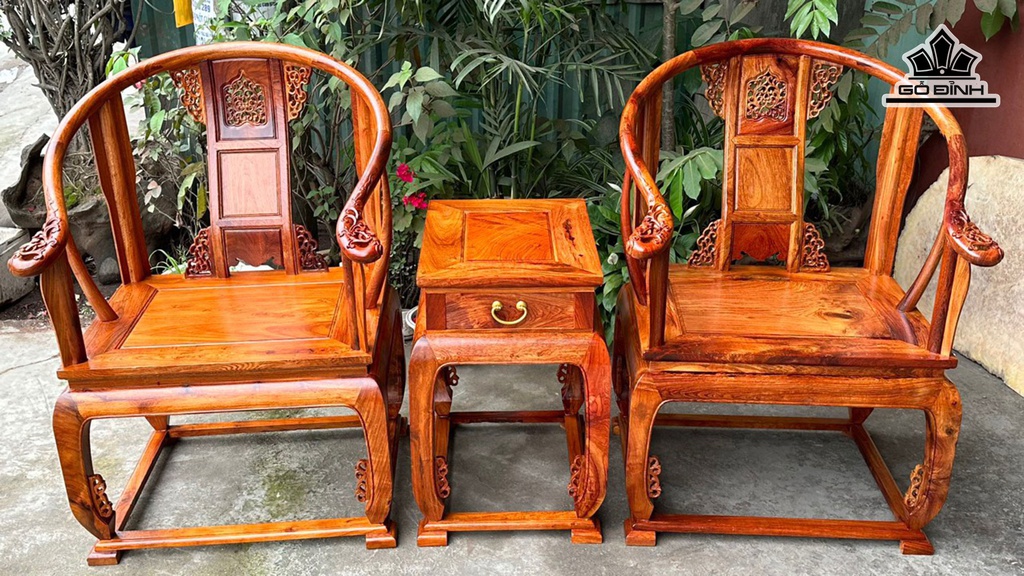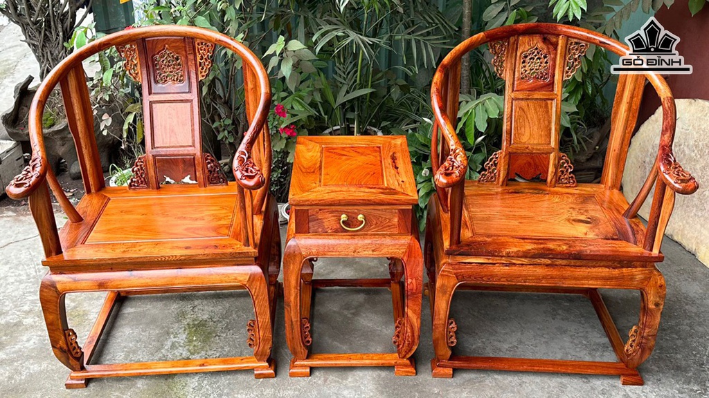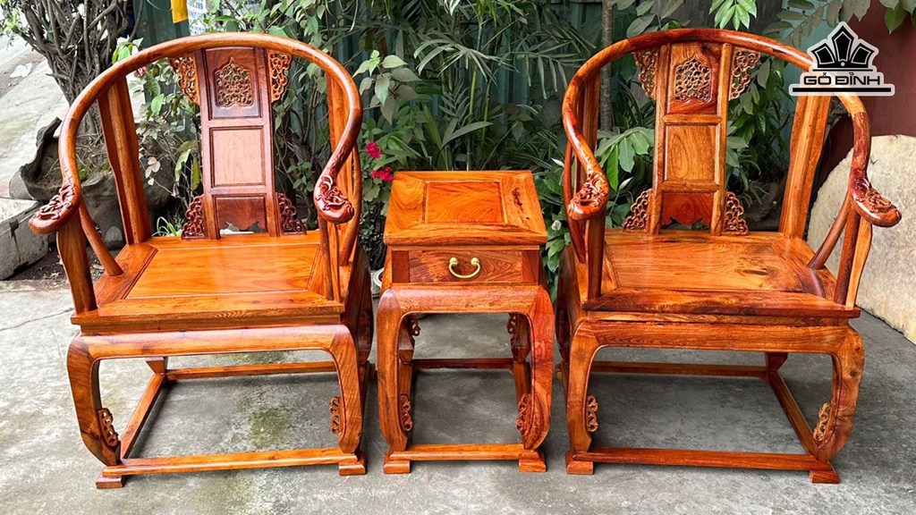 Cặp 3 Bàn Trà Minh Đế Gỗ Hương Cao 96 Rộng 60 Sâu 48 (cm) Đôn Cao 61 Mặt 48x36 (cm)
