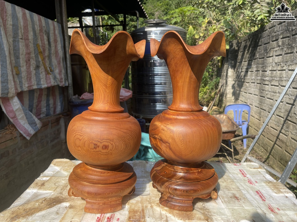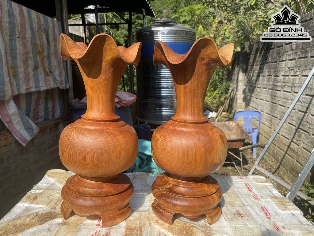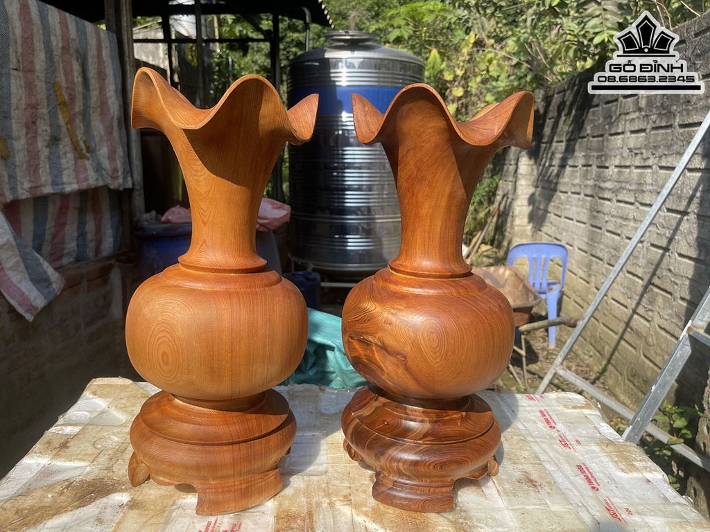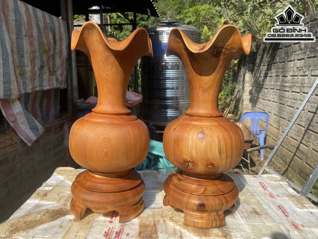 Cặp Bình Củ Tỏi Gỗ Ngọc Am Cao 42 Đường Kính 18.5 (cm)