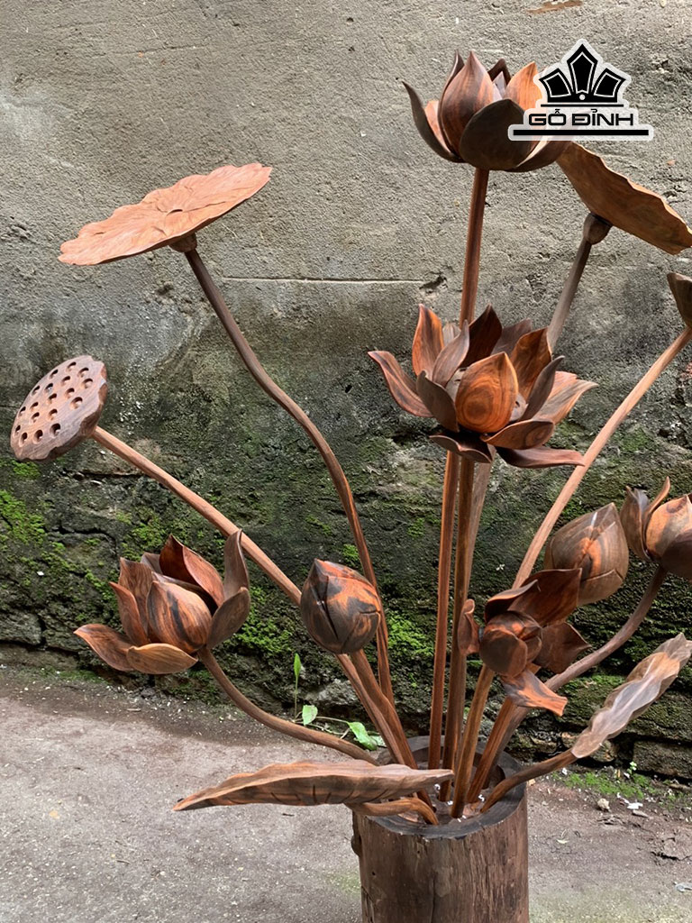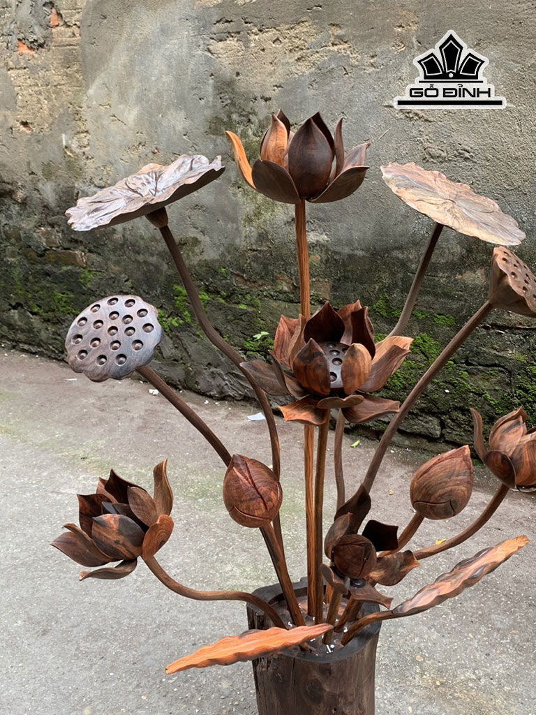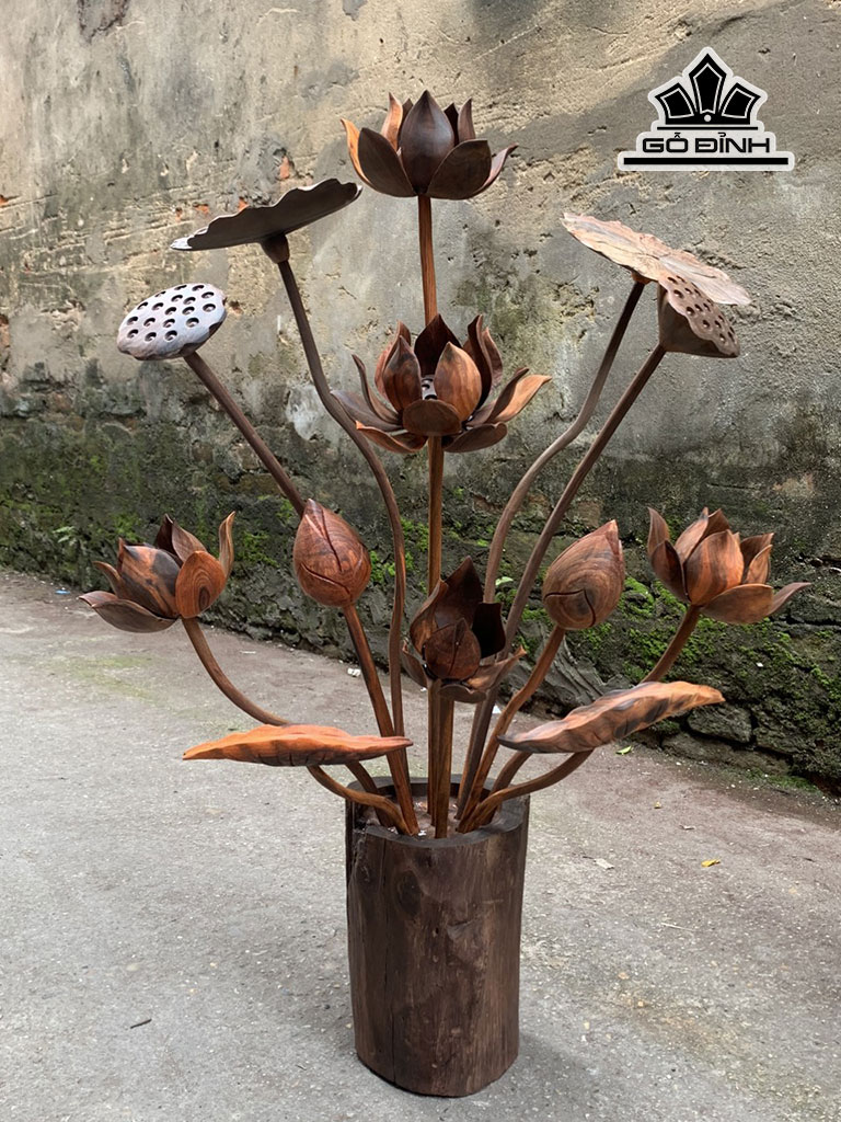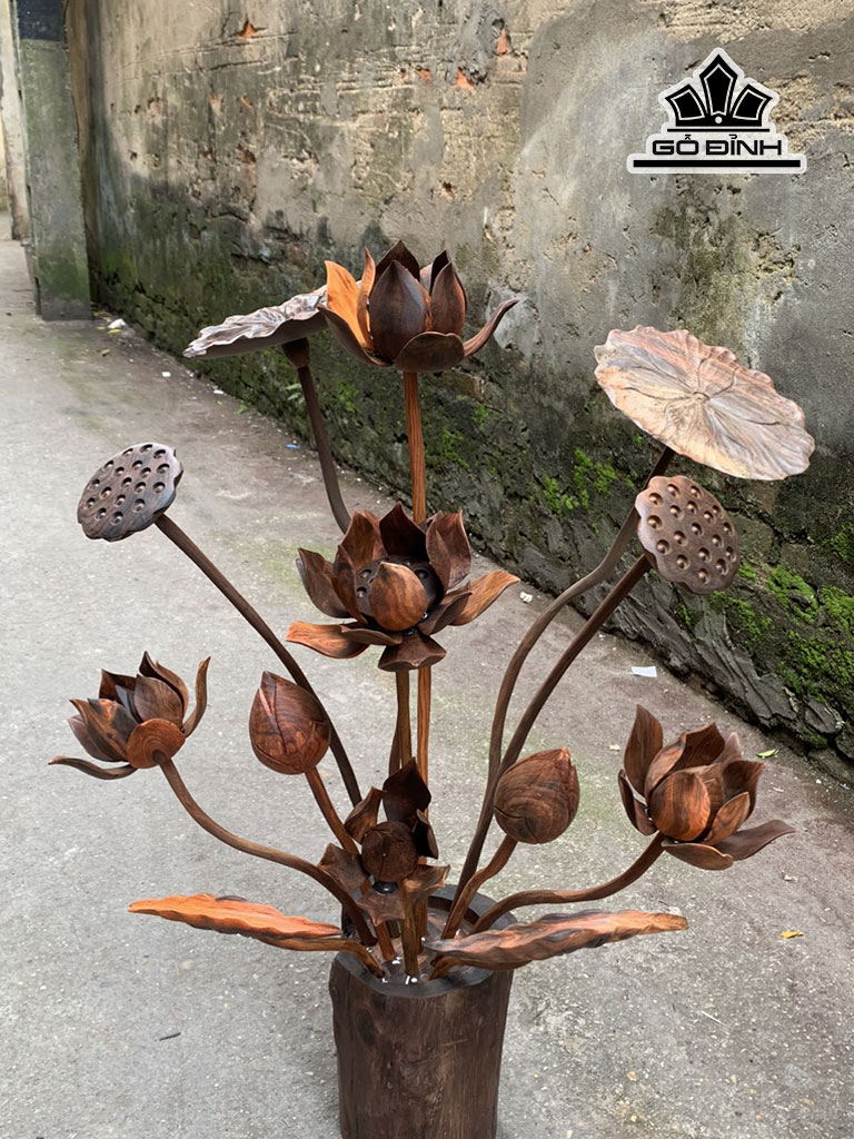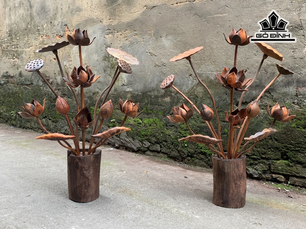 Cặp Bình Hoa Sen 13 Cành Gỗ Trắc Cao 81 Ngang 60 Sâu 30 (cm)