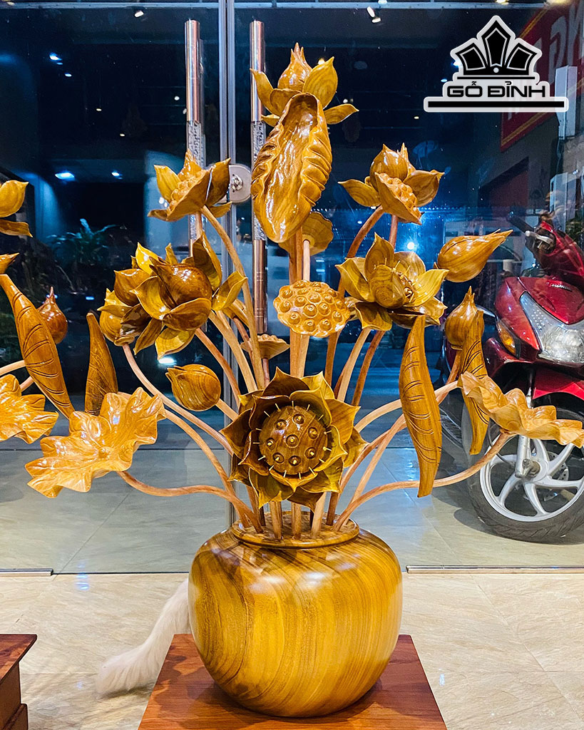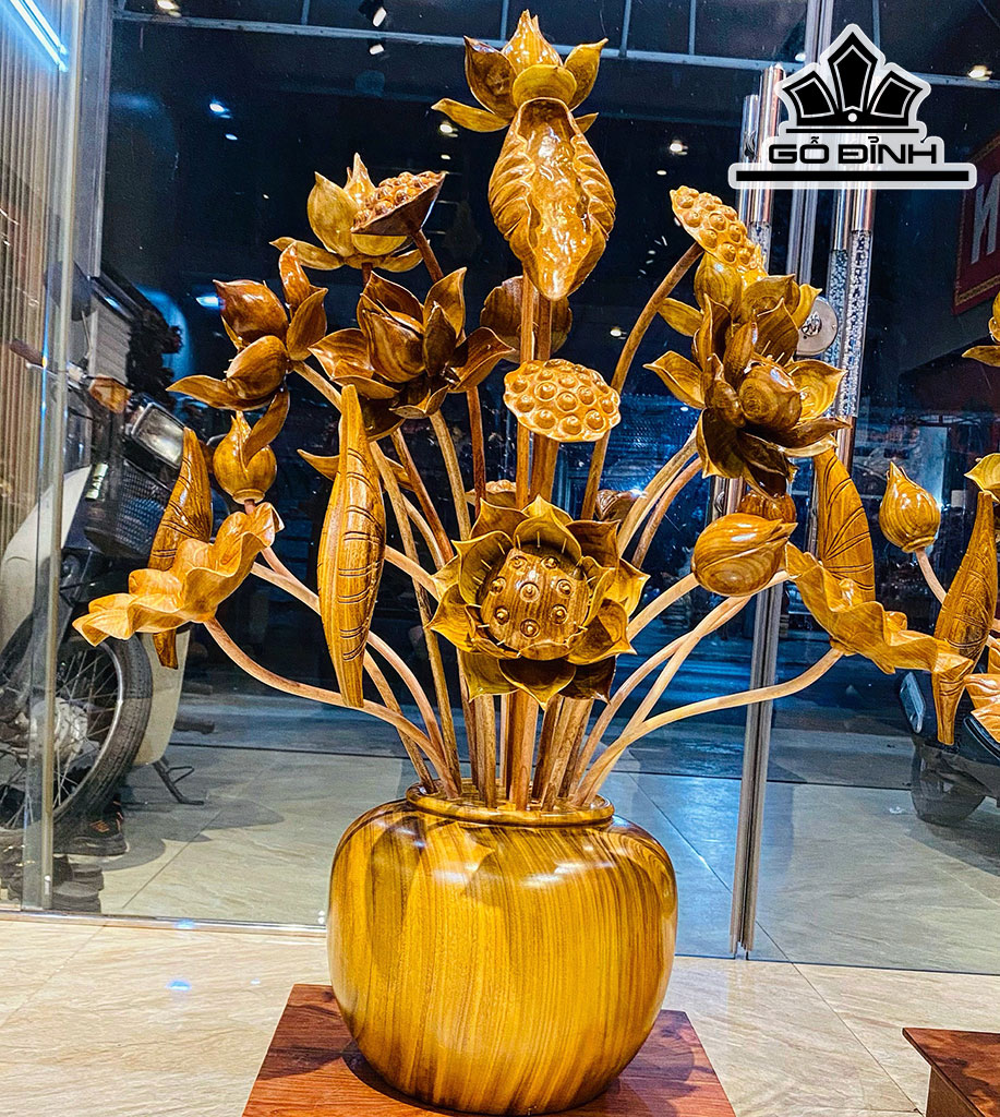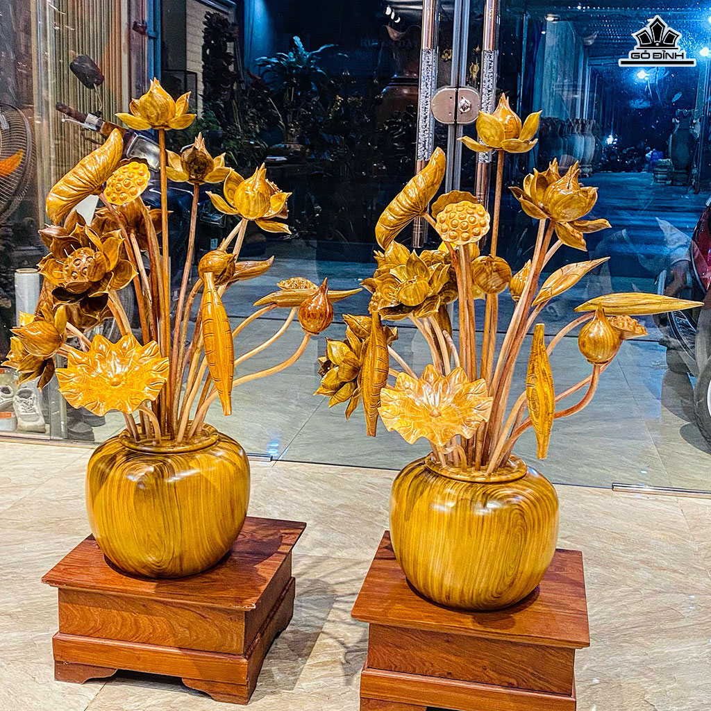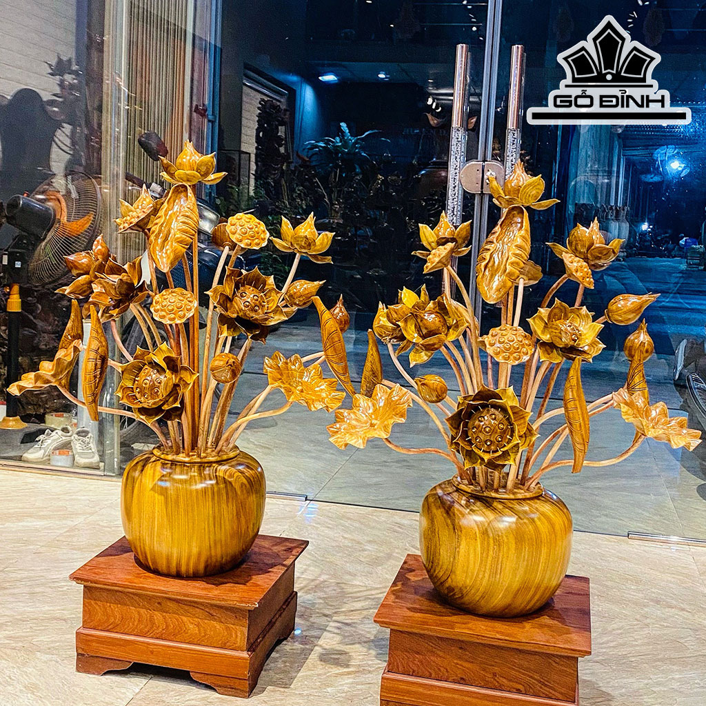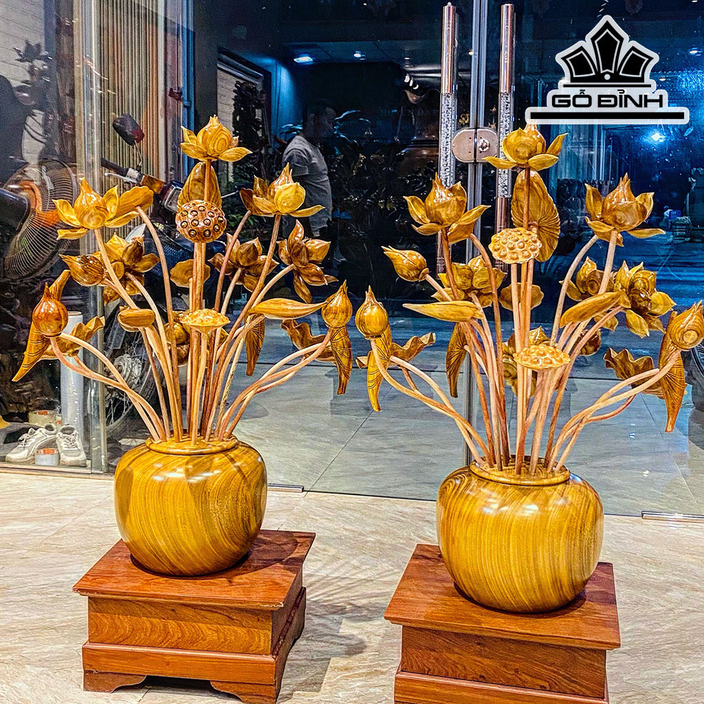 Cặp Bình Hoa Sen Gỗ Cẩm Vàng Cao 92 Ngang 70 Đường Kính 30 (cm)