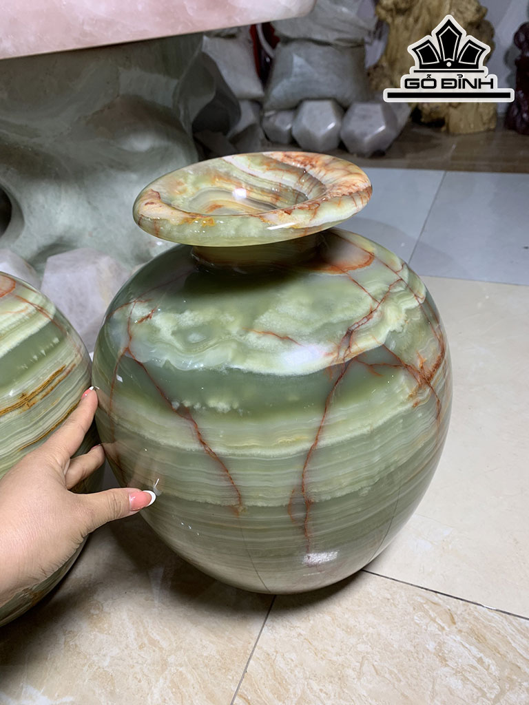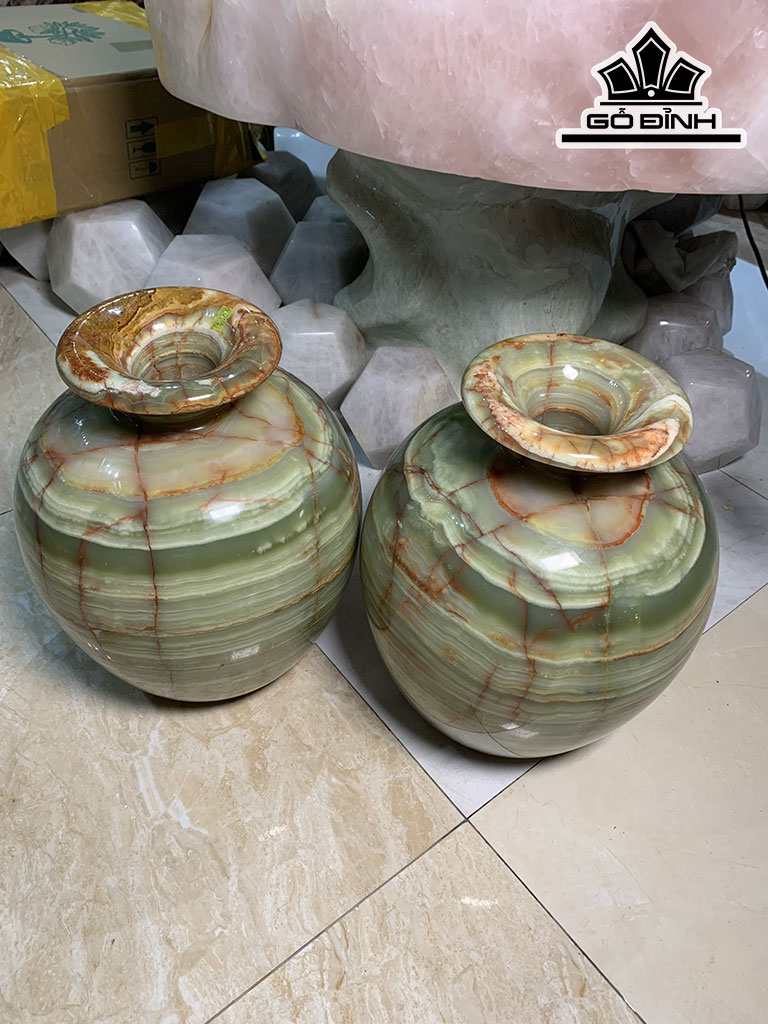 Cặp Bình Phú Quý Đá Onyx Cao 36 Đường Kính Hạt 28 (cm)