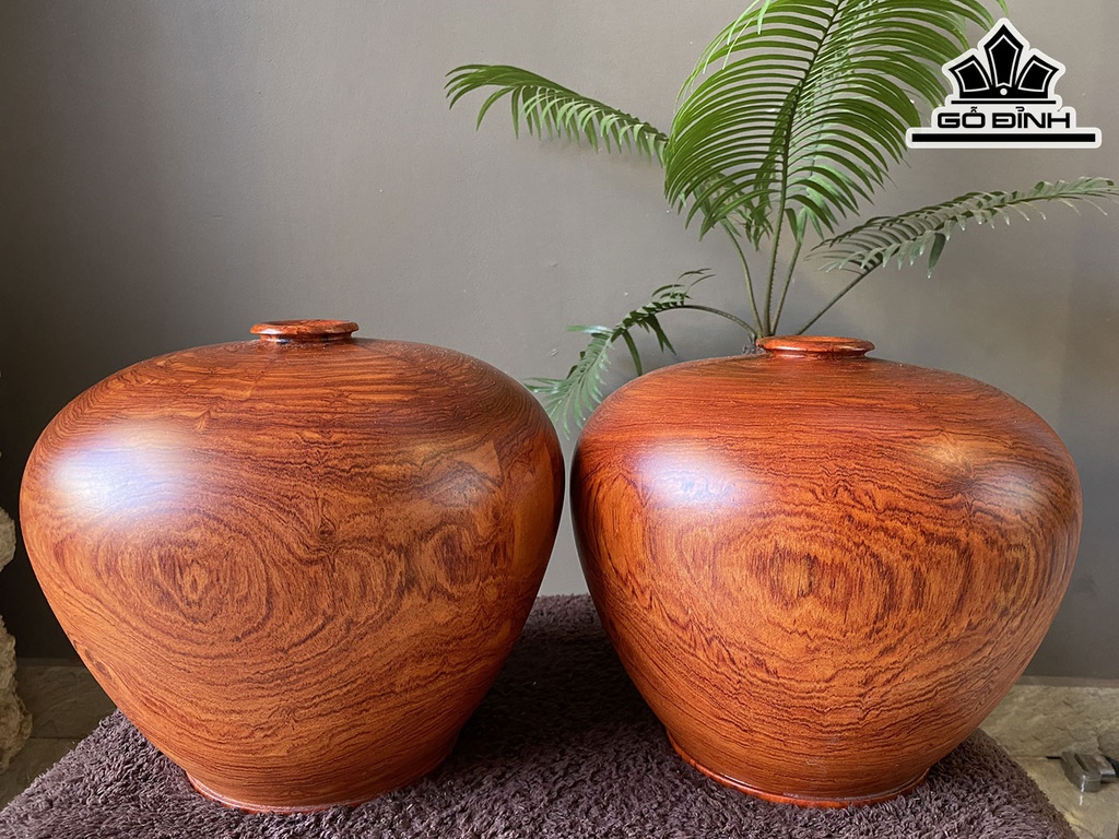 Cặp Bình Phú Quý Gỗ Hương Cao 25 Đường Kính 28 (cm)