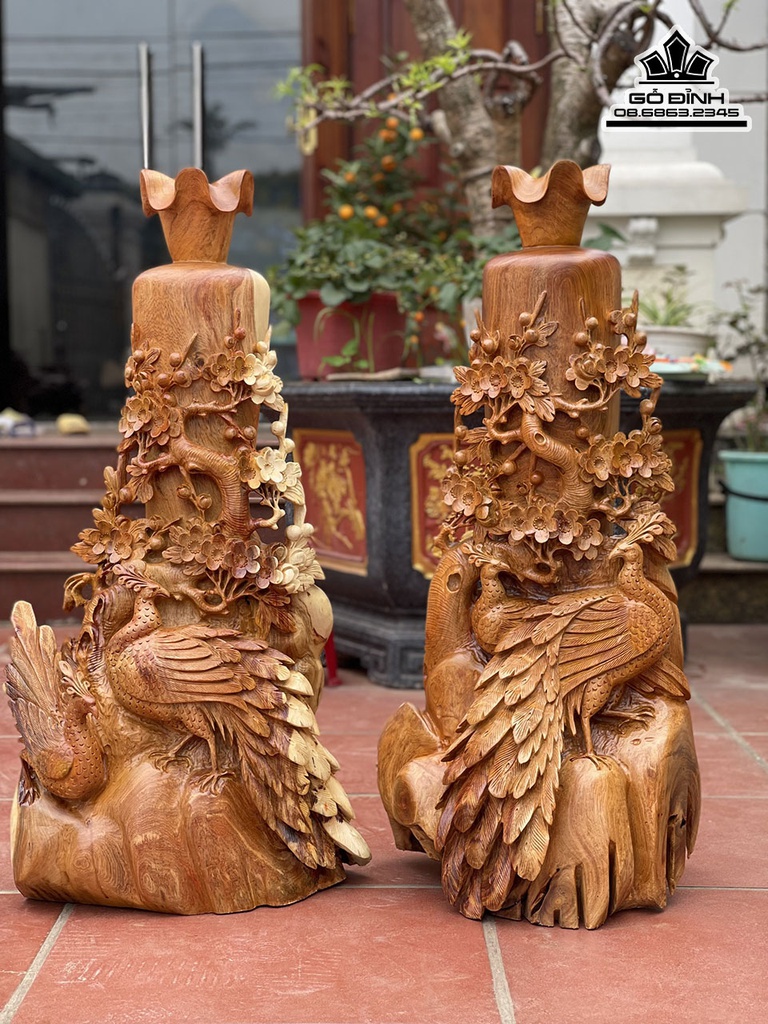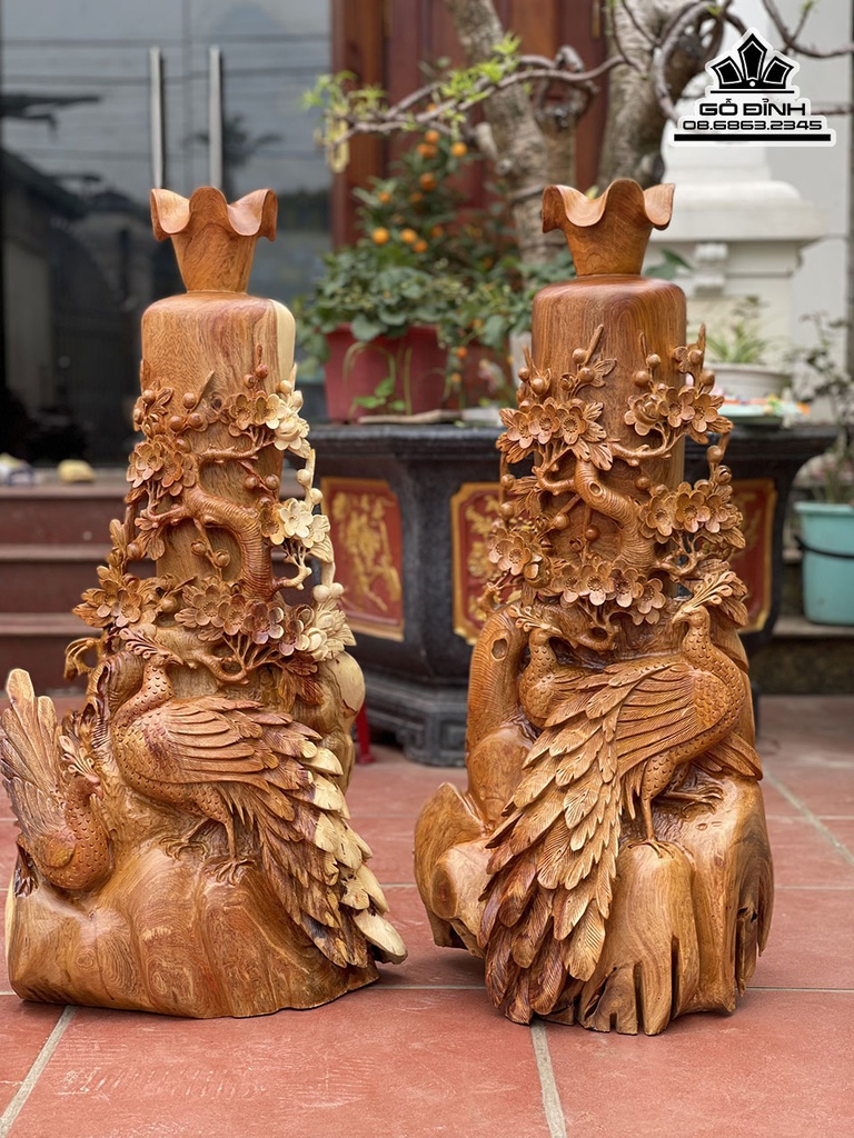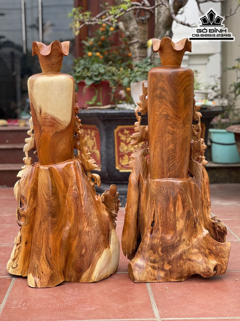 Cặp Bình Phu Thê Gỗ Hương Cao 90 ngang 46 Sâu 35 (cm)