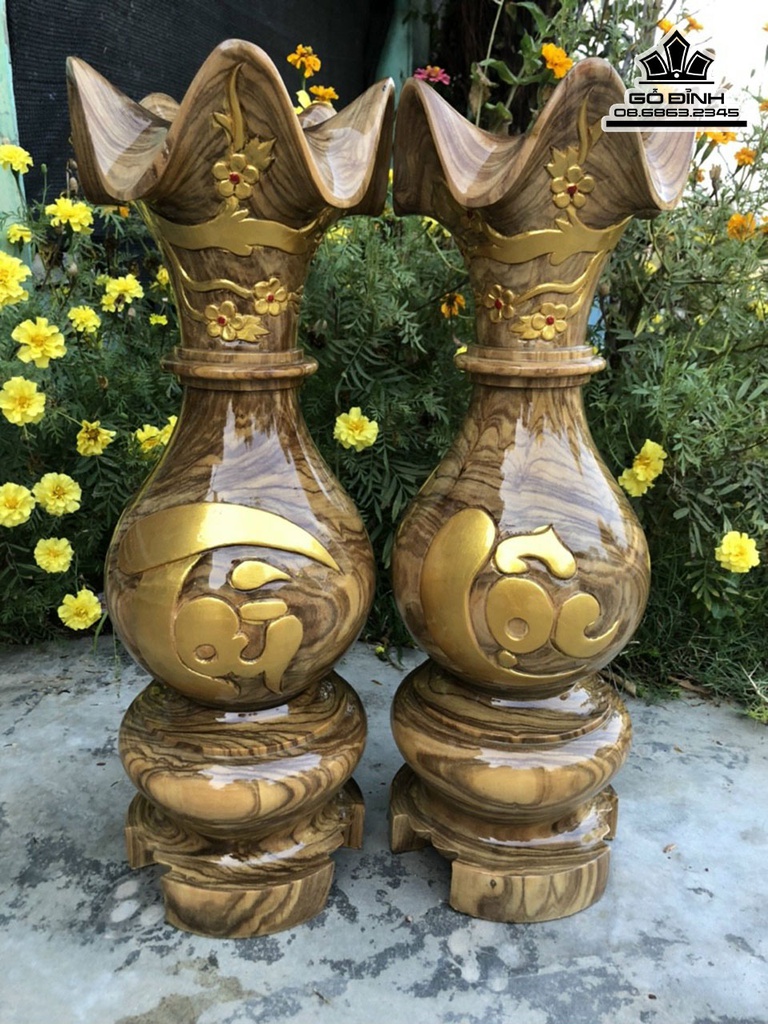 Cặp Bình Tài Lộc Gỗ Cẩm Bông