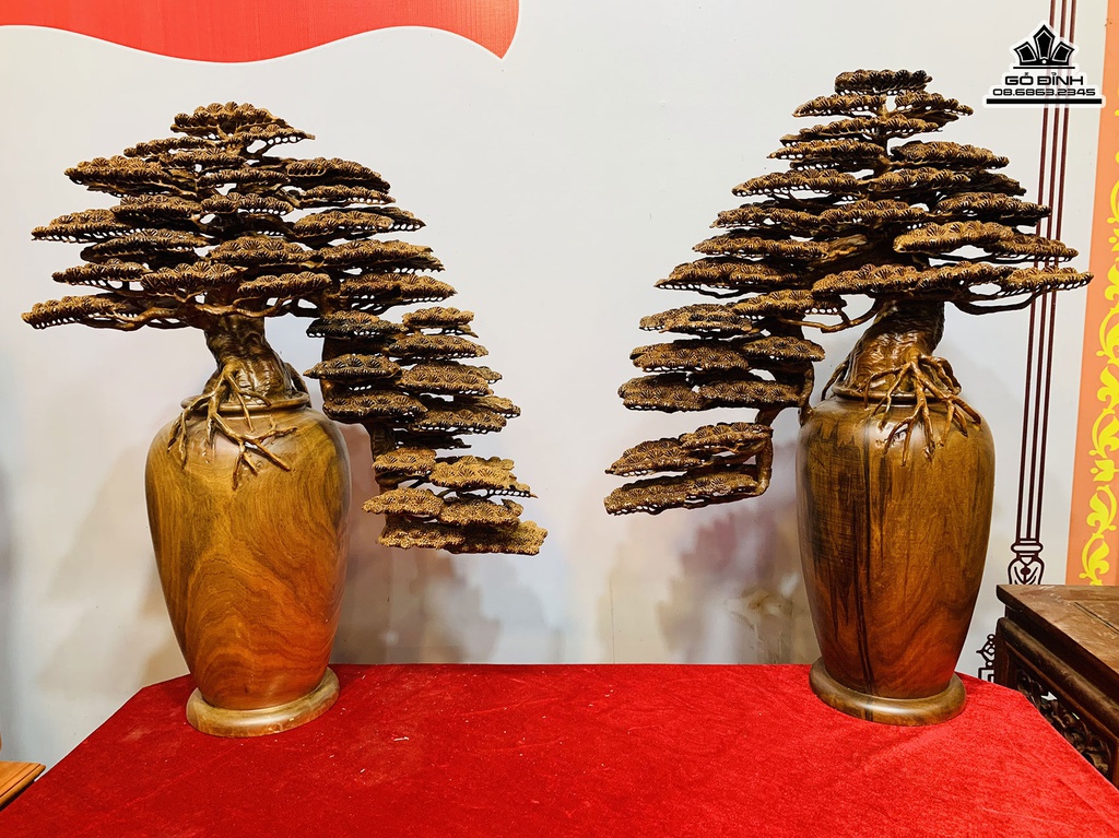 Cặp Bình Tùng Gỗ Bách Xanh Cao 73 Ngang 56 Sâu 23 (cm)