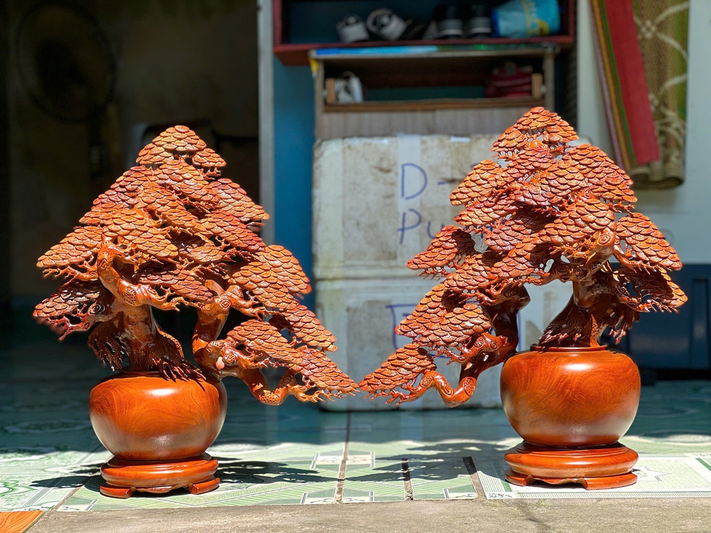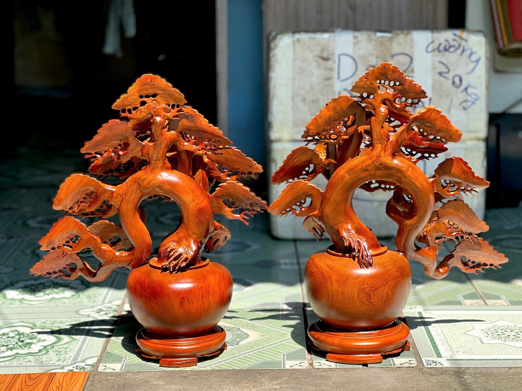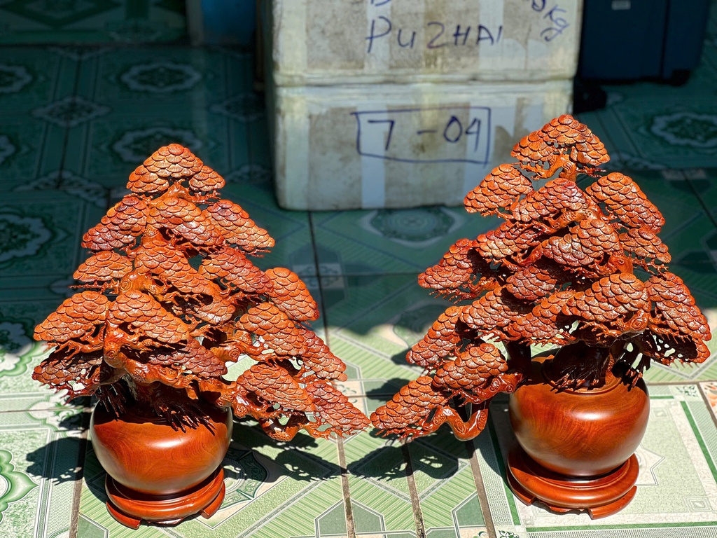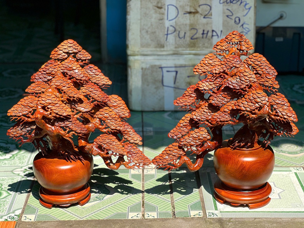 Cặp Bình Tùng Gỗ Hương Cao 56-57 Ngang 50 Sâu 22 (cm)
