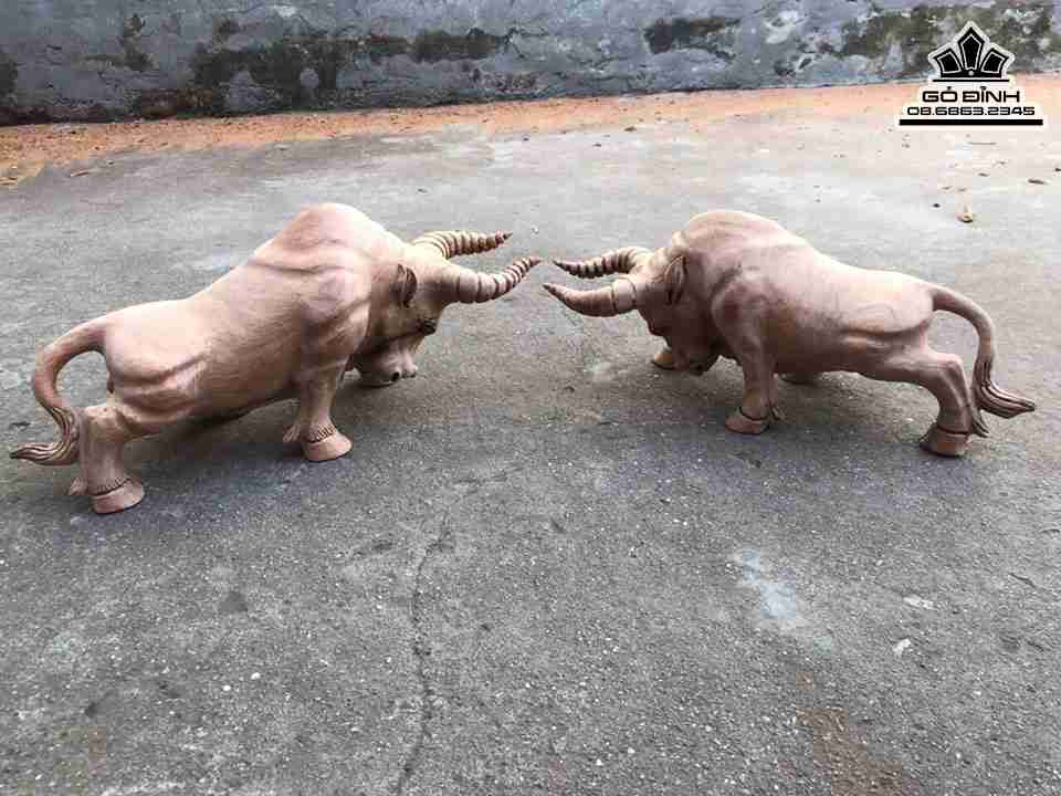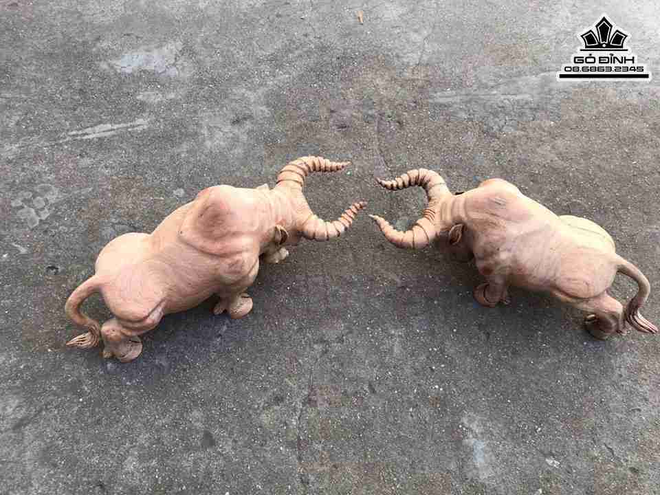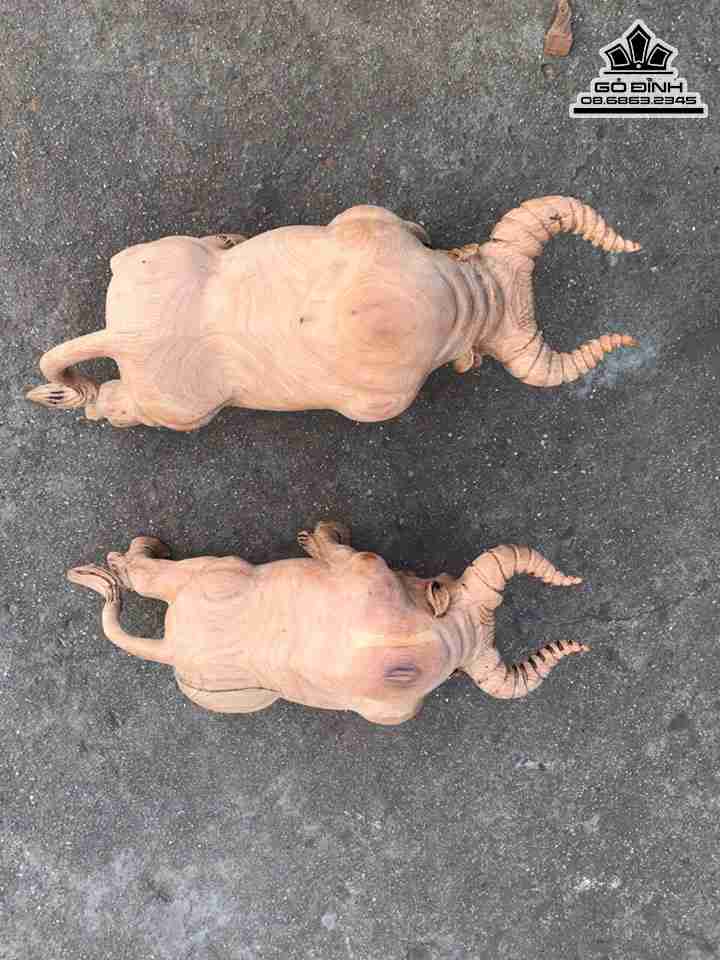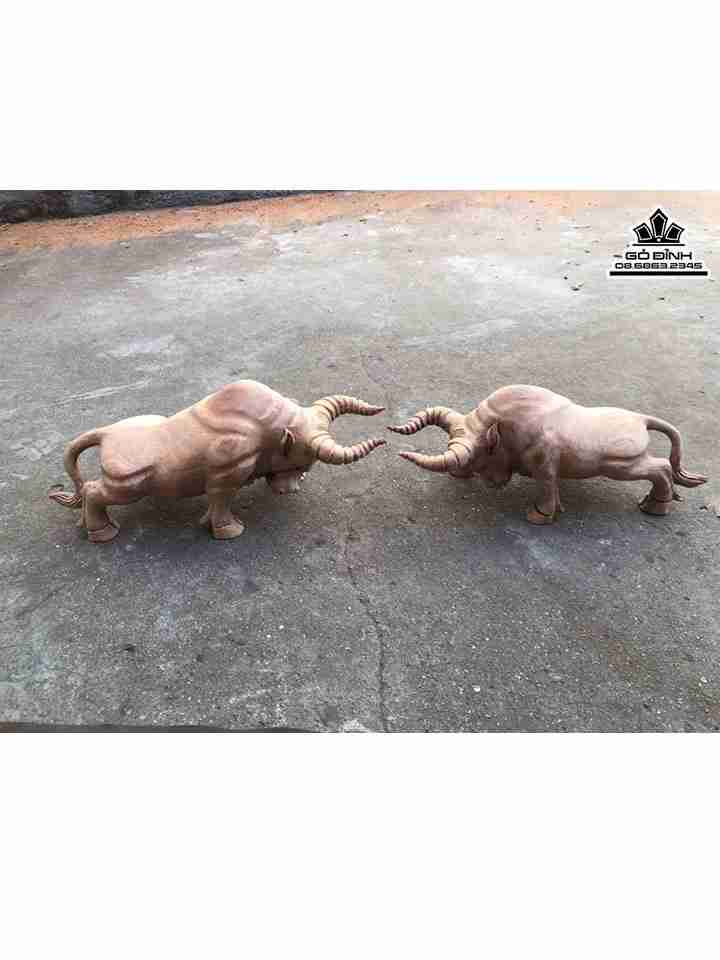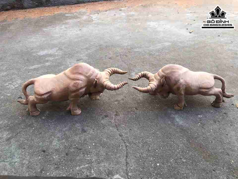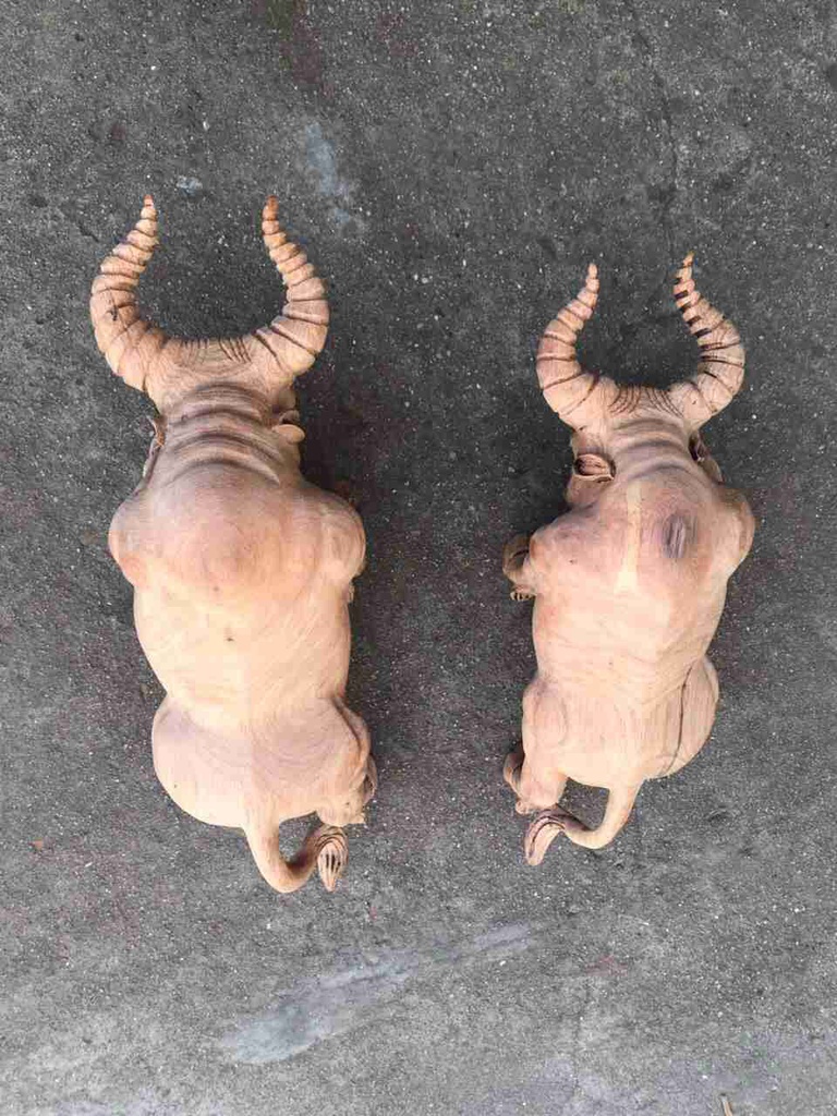 Cặp Bò Tót Gỗ Gõ Đỏ (Cà Te) Cao 42-38 Ngang 18-16 Sâu 15-14 (cm)