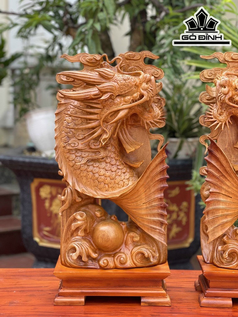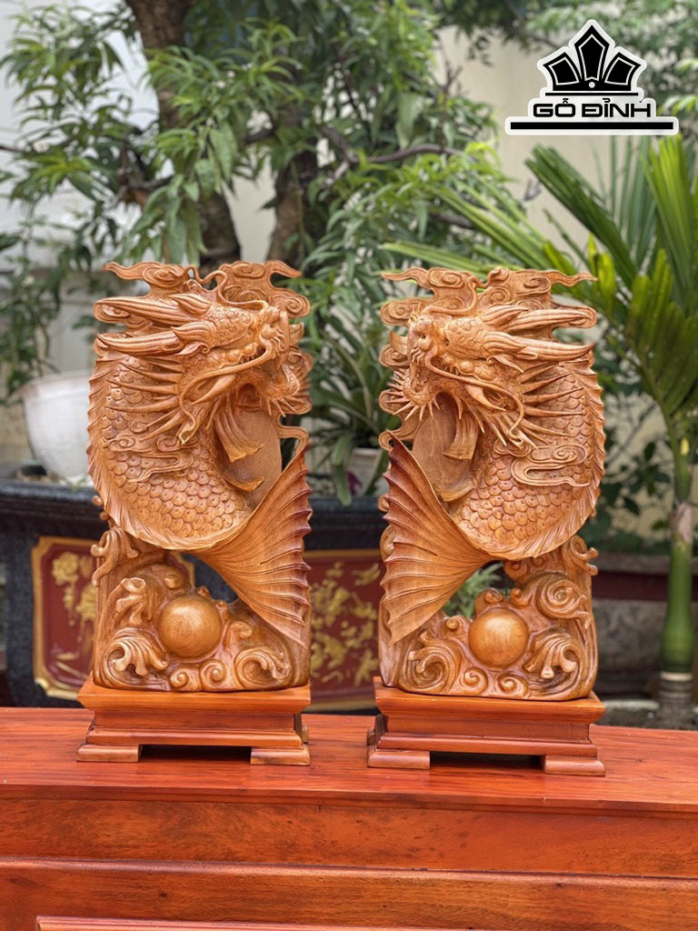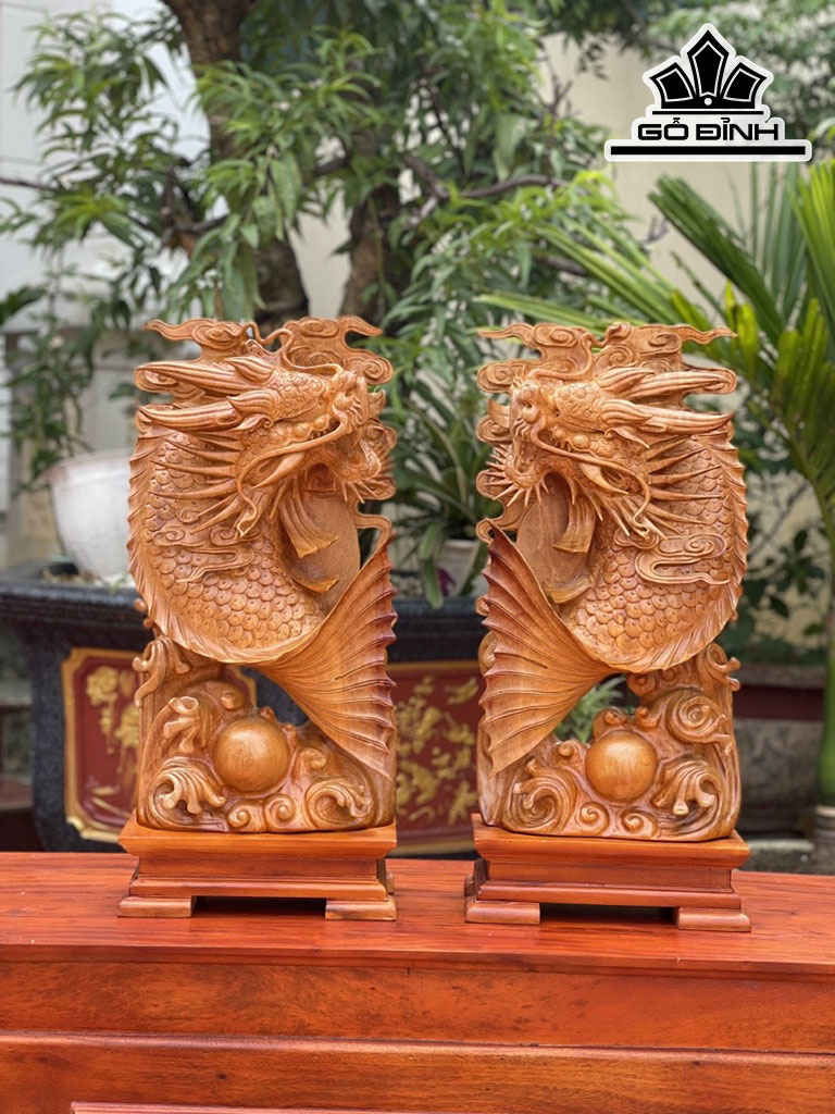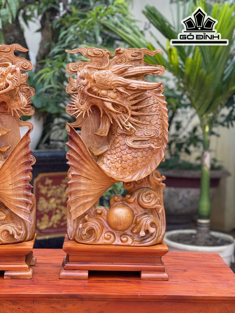 Cặp Cá Chép Hóa Rồng Gỗ Hương Cao 50 Ngang 28 Sâu 15 (cm)