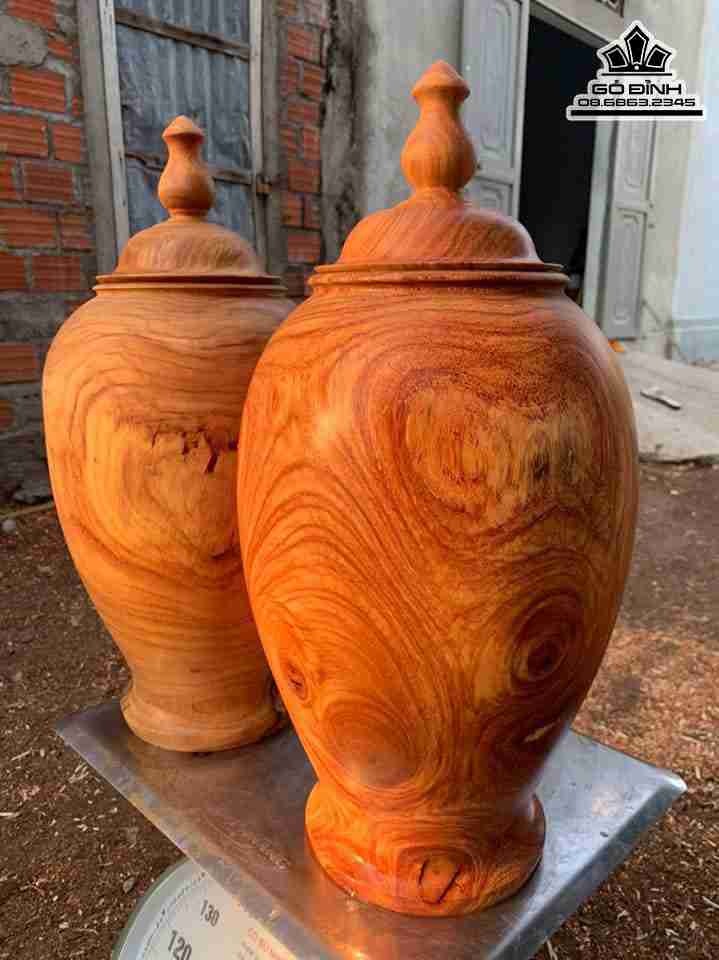 Cặp Chum Phú Quý Gỗ Gõ Đỏ ( Cate ) Đường Kính 25 Cao 50 (cm)