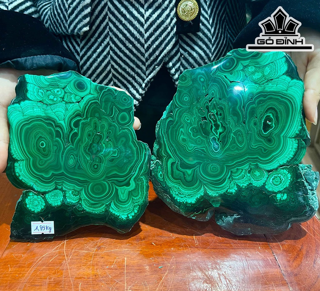 Cặp Đá Malachite Cao 18 Ngang 16 Sâu 2 (cm) 1,85kg