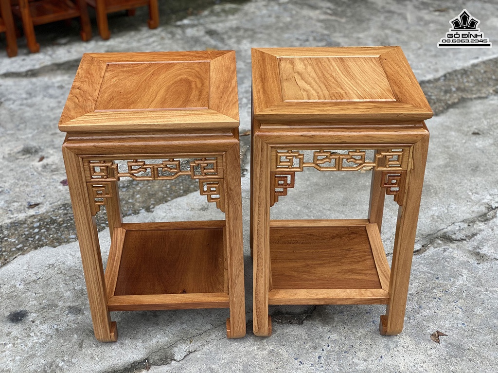 Cặp Đôn Vuông Gỗ Gõ Đỏ