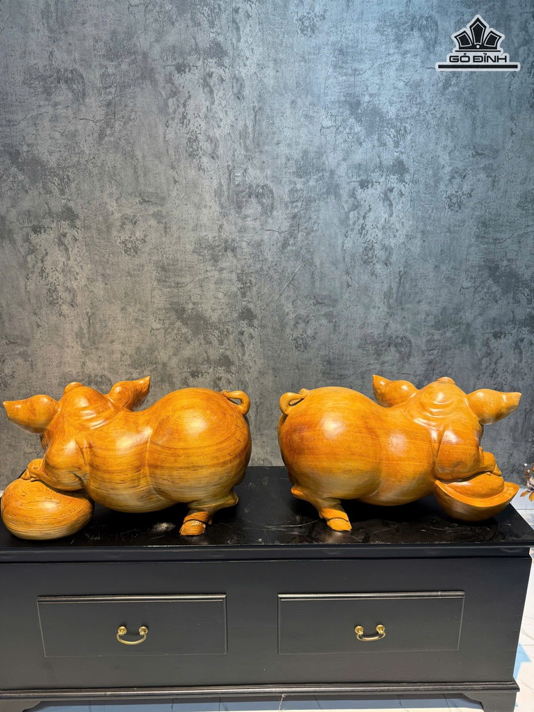 Cặp Heo Gỗ Ngọc Am 33kg Cao 32 Ngang 60 Sâu 32 (cm)