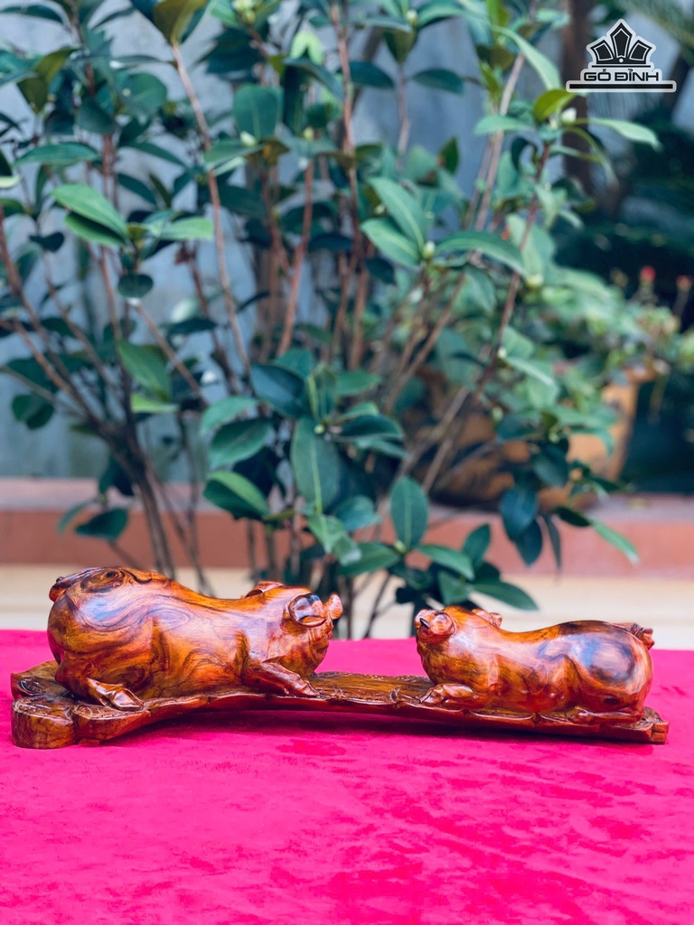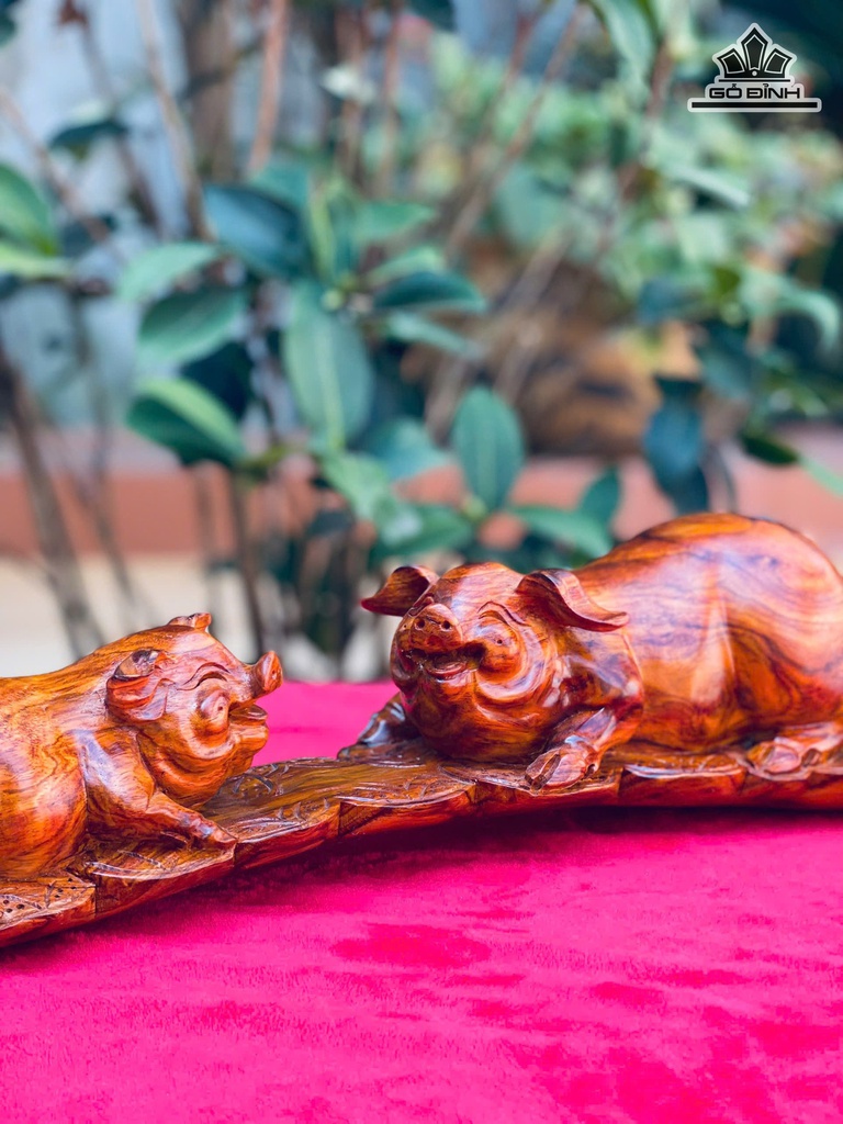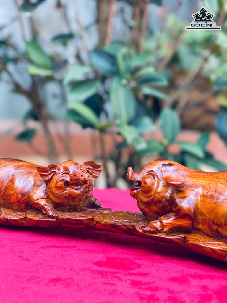 Cặp Heo Phu Thê Viên Mãn Gỗ Sưa Cao 12 Ngang 45 Sâu 16 (cm)