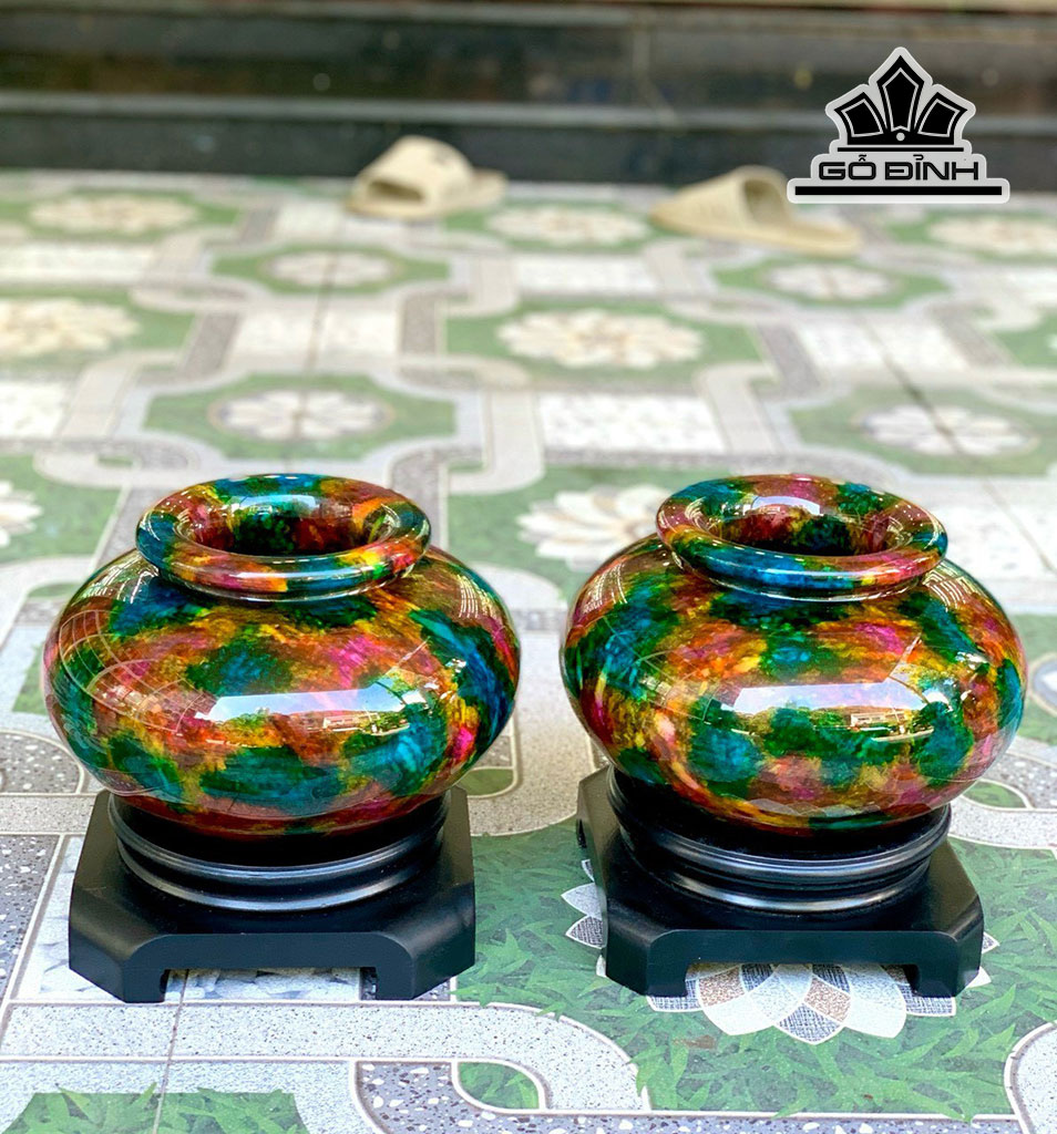 Cặp Hủ Tứ Quý Đá Lông Công (Malachite) Cao 20 Đường Kính 20 (cm) 7,8kg