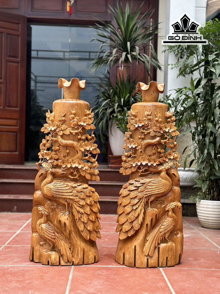 Cặp Lục Bình Chim Công Gỗ Ngọc Am Cao 110 Ngang 40 Sâu 30 (cm)