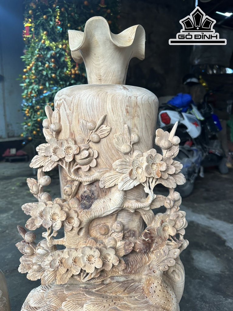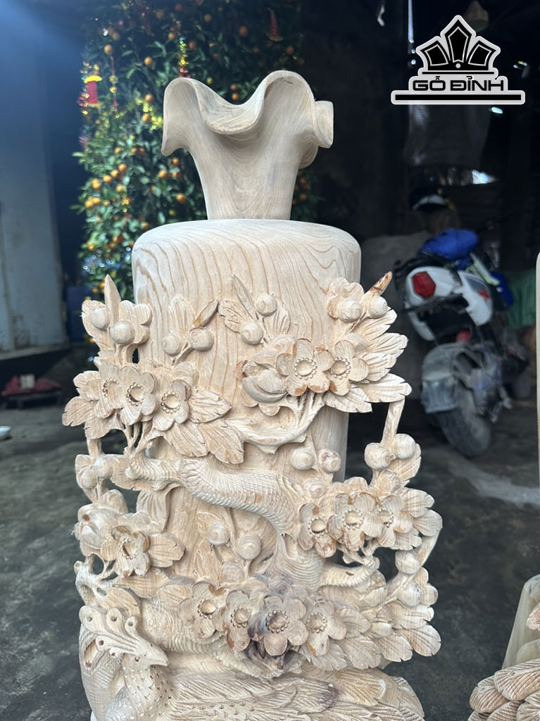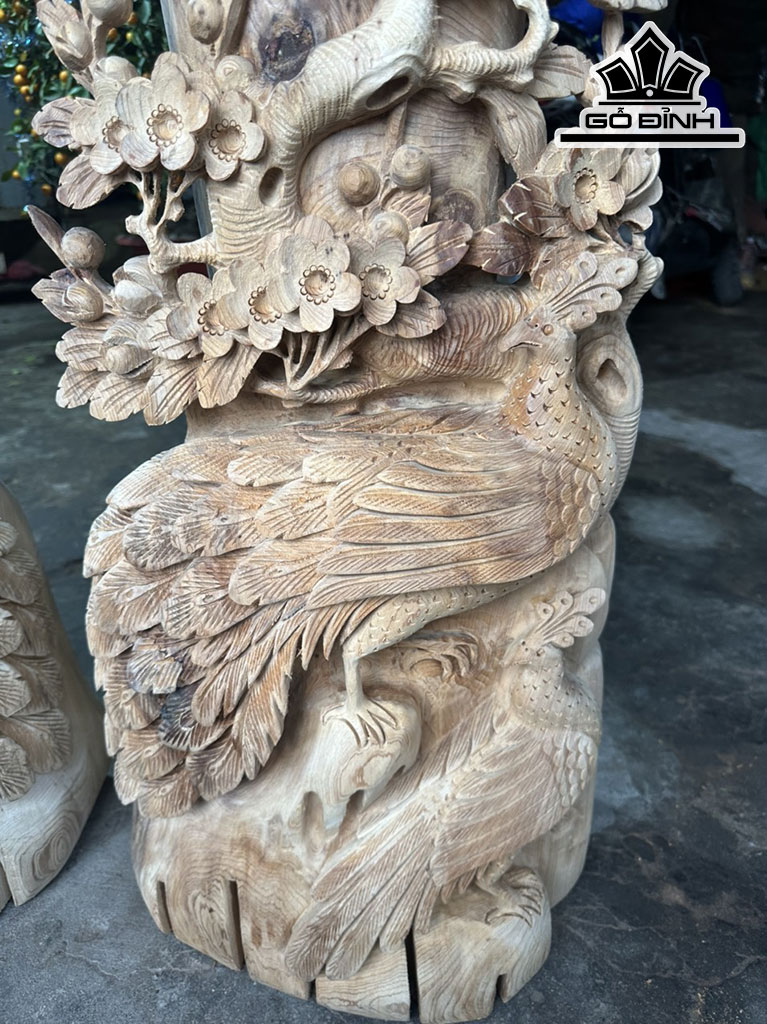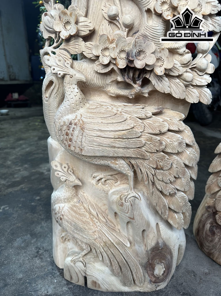 Cặp Lục Bình Chim Công Hoa Mai Gỗ Ngọc Am Cao 94 Ngang 35 Sâu 31 (cm)