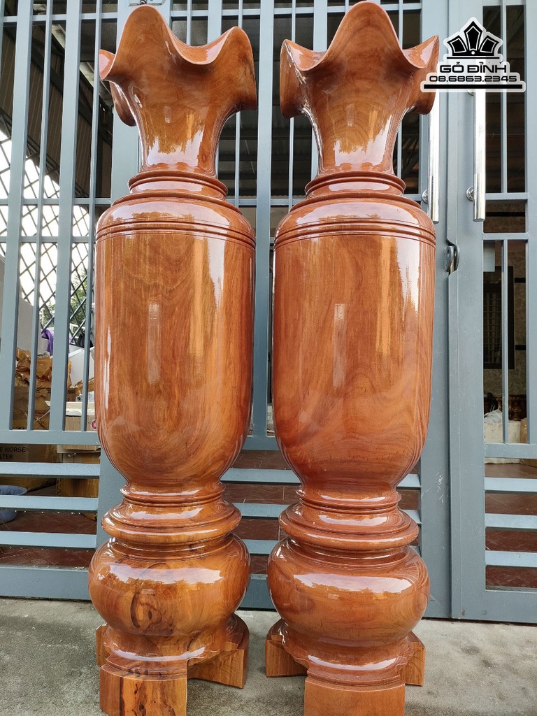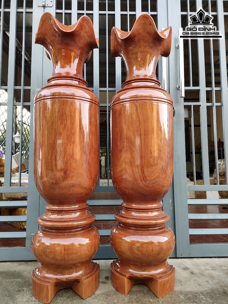 Cặp Lục Bình Gỗ Đinh Hương Cao 138 Đường Kính 35.5 (cm)