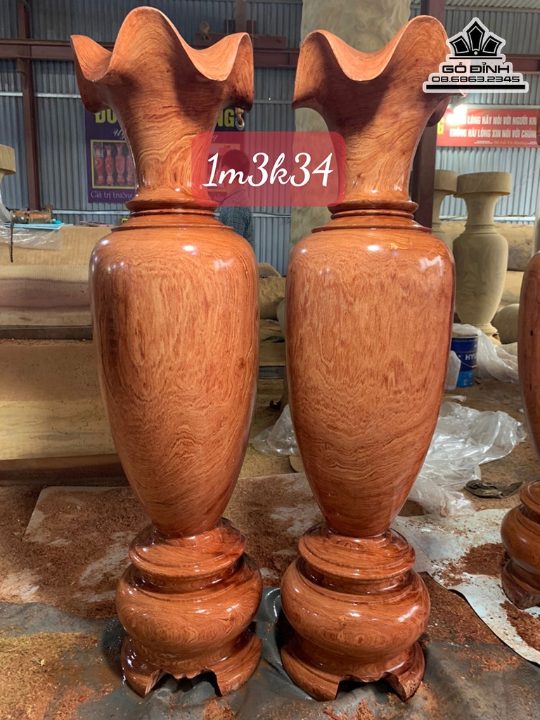 Cặp Lục Bình Gỗ Hương Đá Cao 130 Đường Kính 34 (cm)