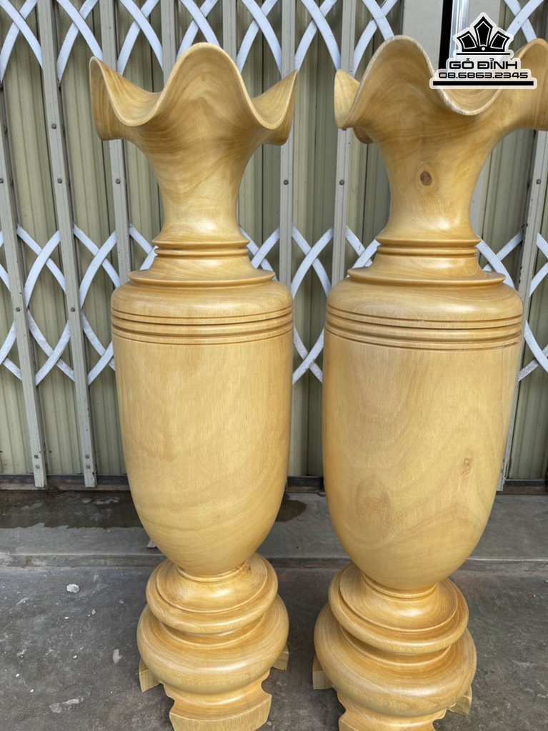 Cặp Lục Bình Gỗ Mít Cao 81 Đường Kính 22 (cm)