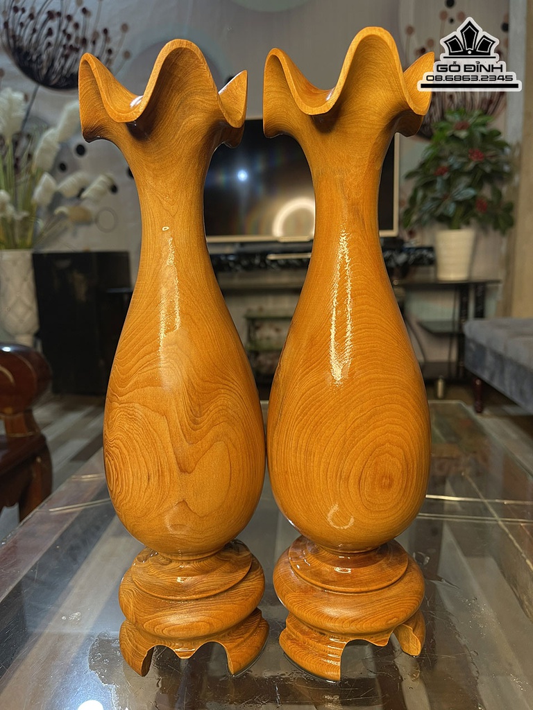 Cặp Lục Bình Gỗ Ngọc Am Cao 32 Đường Kính 9.5 (cm0