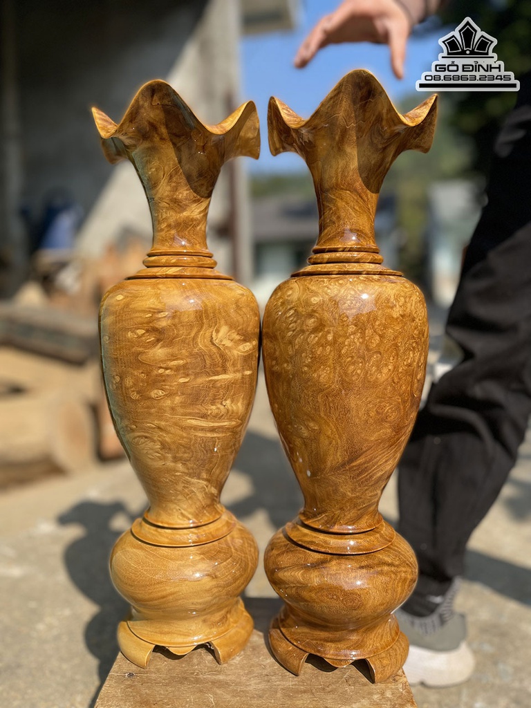 Cặp Lục Bình Gỗ Nu Nghiến Cao 50 Đường Kính 15 (cm)