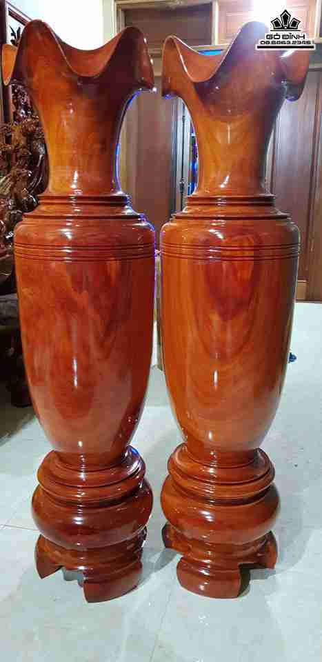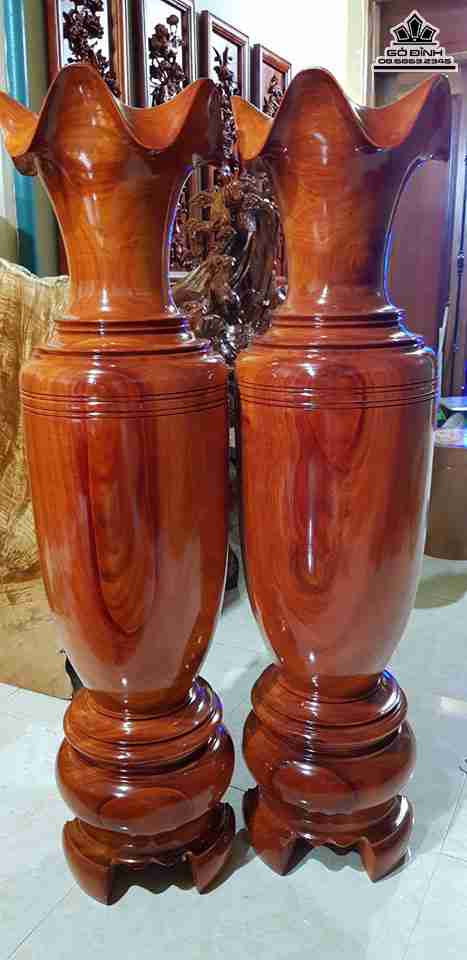 Cặp Lục Bình gỗ sơn huyết cao 1m39.5 đường kính 36 (cm)
