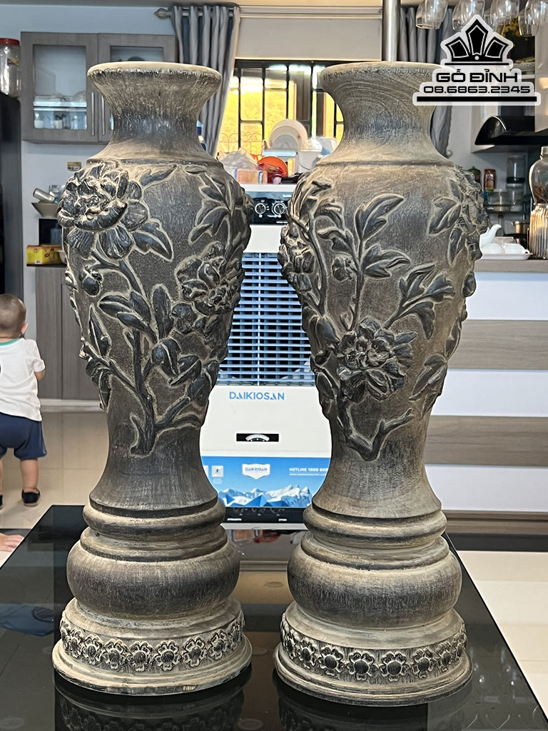 Cặp Lục Bình Gỗ Trầm Hương Cao 60 Đường Kính 20 (cm)