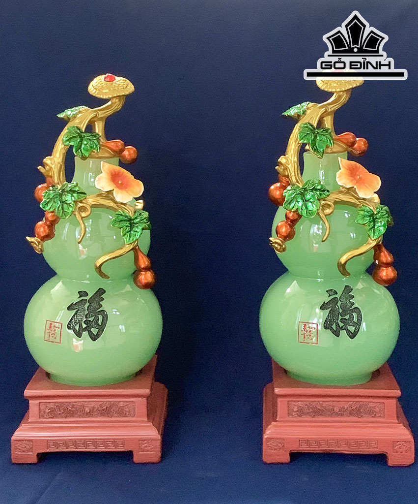 Cặp Lục Bình Hồ Lô Đá Onyx Trắng - Xanh Cao 30 (cm)
