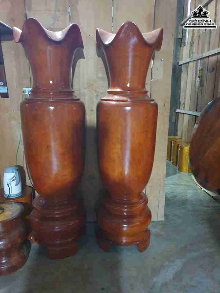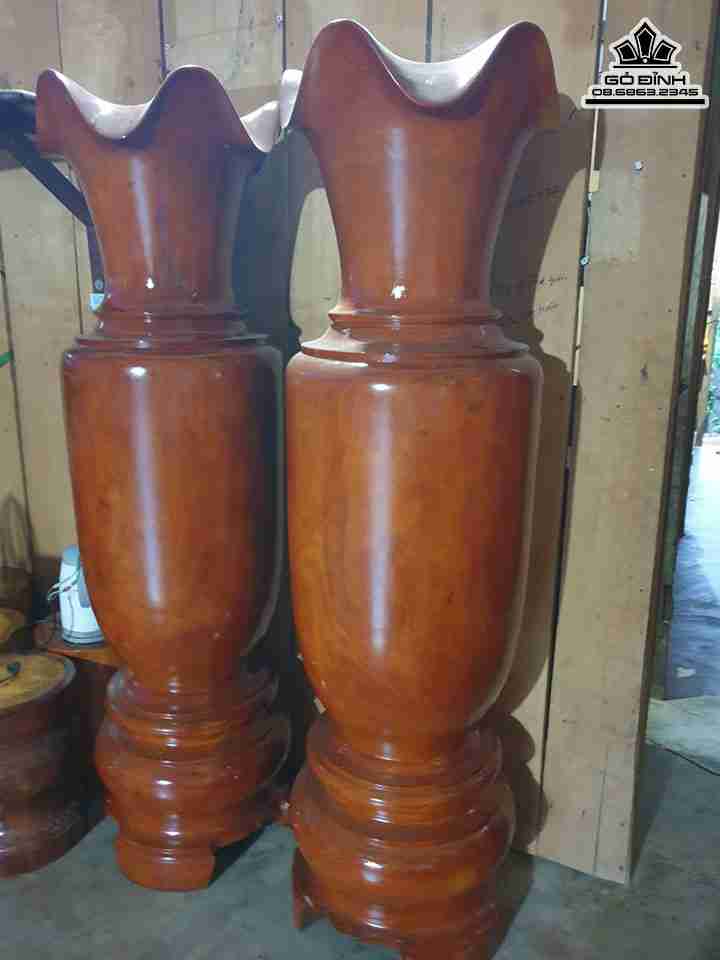 Cặp Lục Bình Nguyên Khối Gỗ Huyết Long Đường Kính 52 Cao 180 (cm)