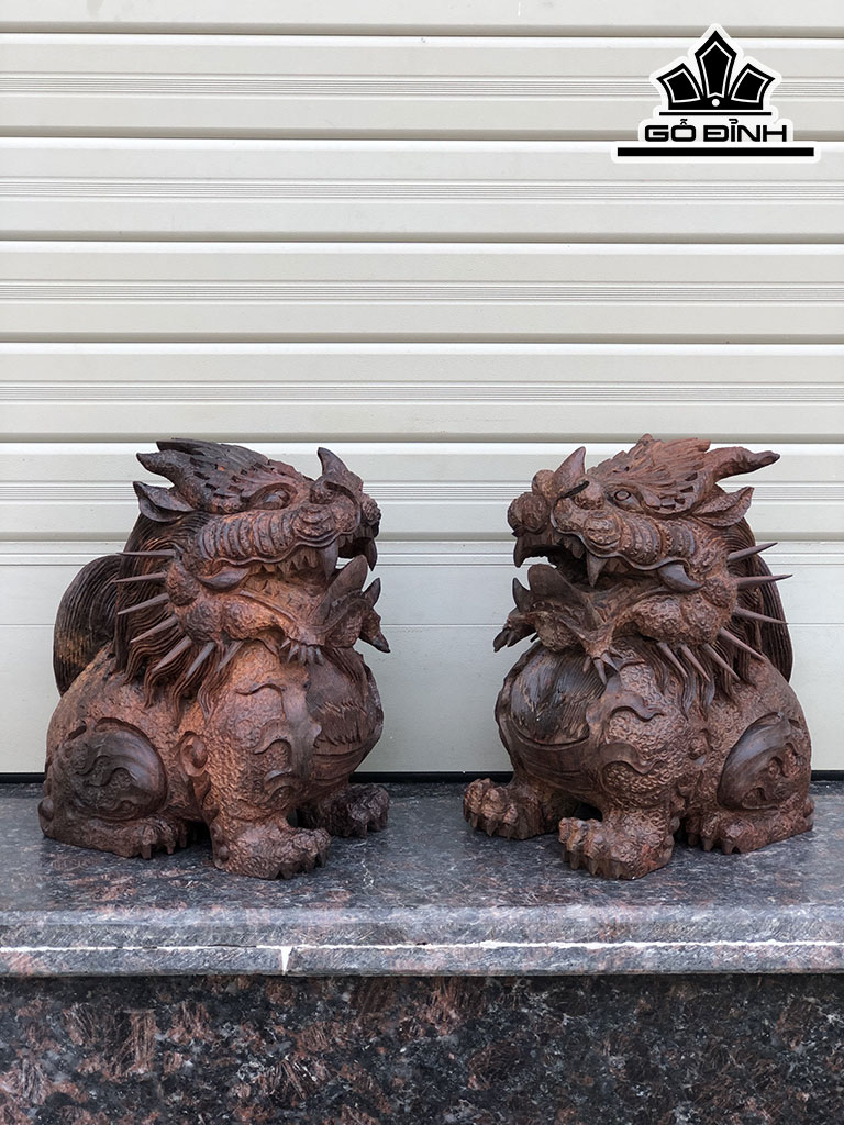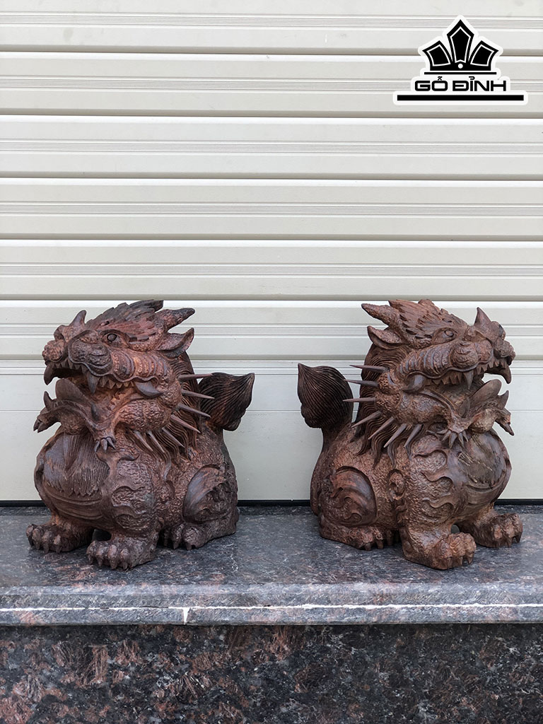 Cặp Nghê Tài Lộc Gỗ Trắc Cao 20 Ngang 18 Sâu 11 (cm)