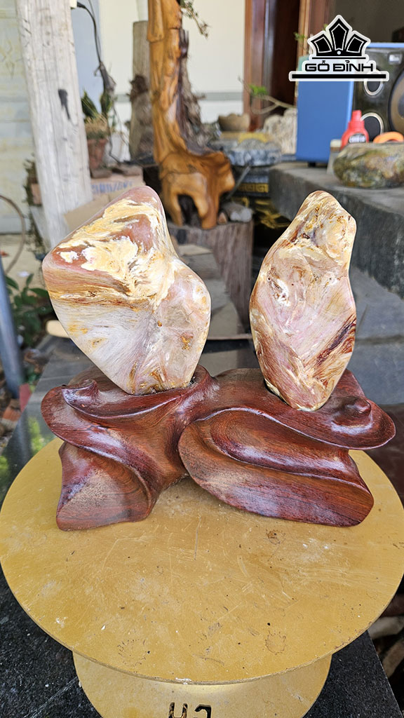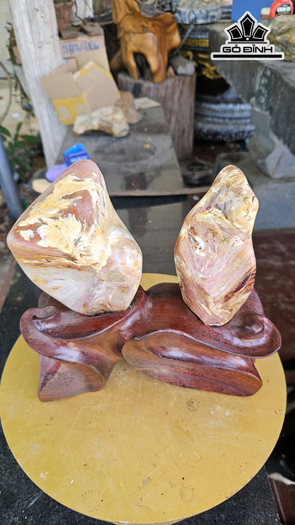 Cặp Phu Thê Gỗ Hóa Ngọc Hồng Cánh Sen Cao 24 Ngang 18 (cm) 3,5kg
