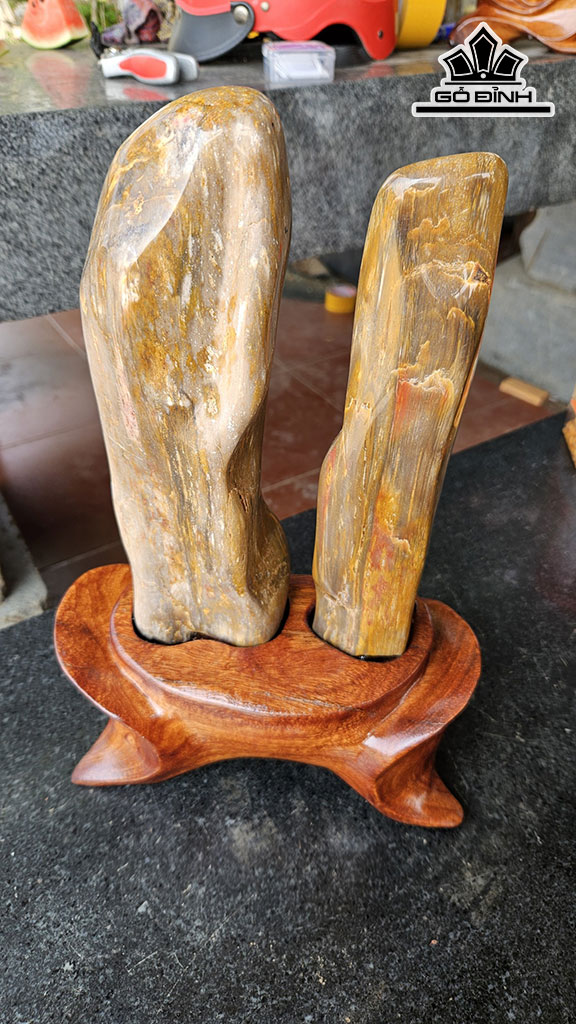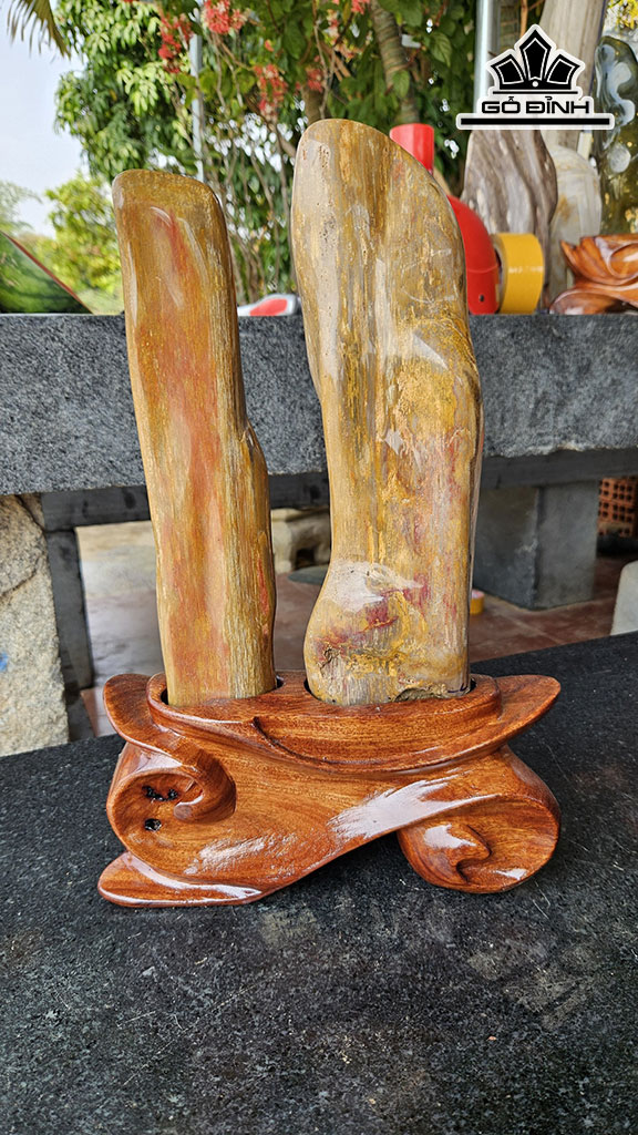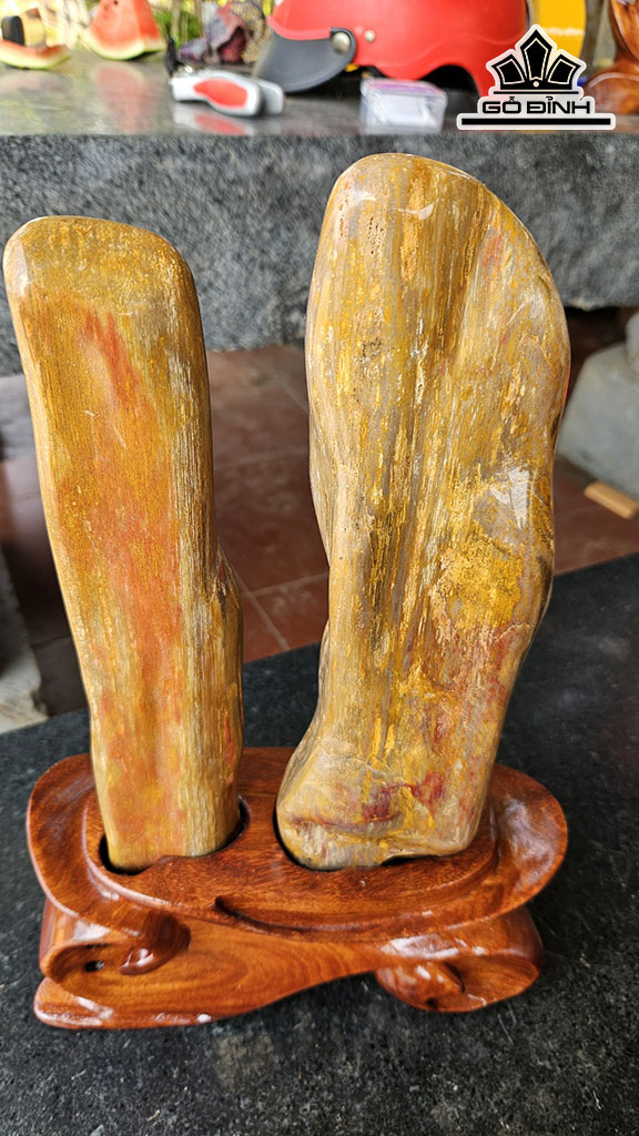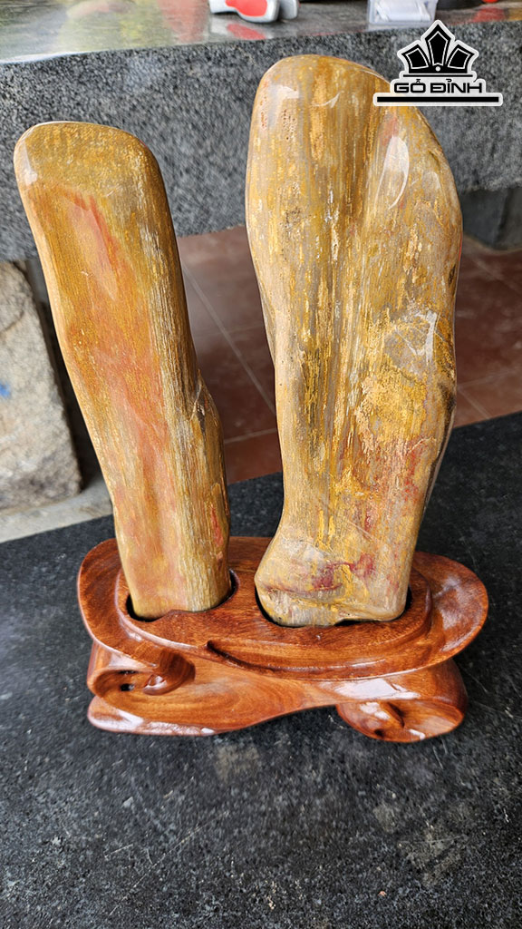 Cặp Phu Thê Gỗ Hóa Thạch Đỏ Vàng Cao 35 Ngang 16 (cm) 4kg