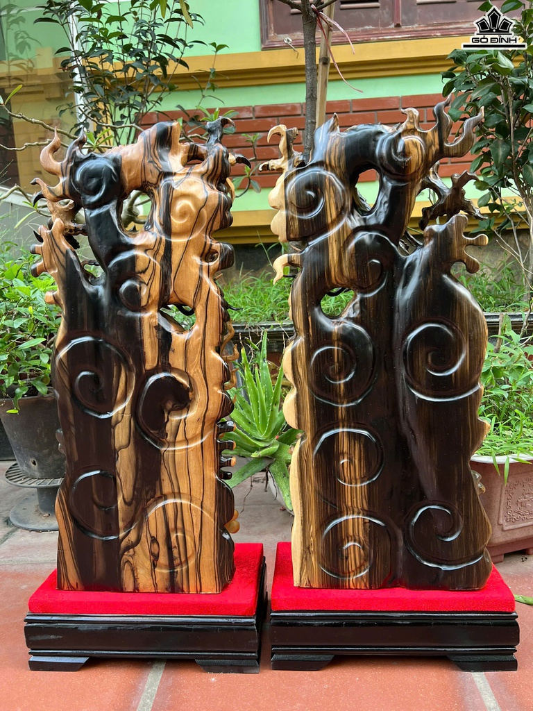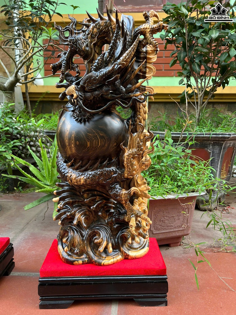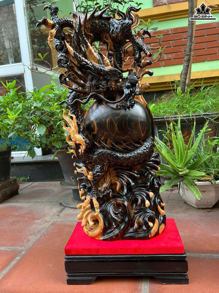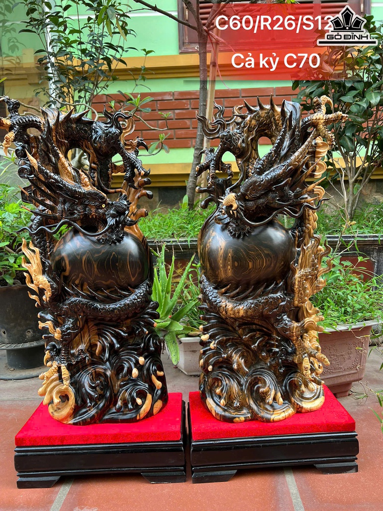 Cặp Rồng ( Nhất Long) Trấn Chum Gỗ Mun Hoa Cao Cả Kỷ 70 Ngang 26 Sâu 12 (cm) - Kỷ Cao 10 (cm)