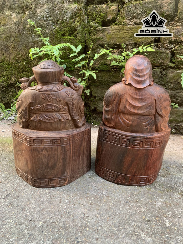 Cặp Thần Tài Thổ Địa Gỗ Trắc Cao 24-25 Ngang 17-15 Sâu 14-13 (cm)