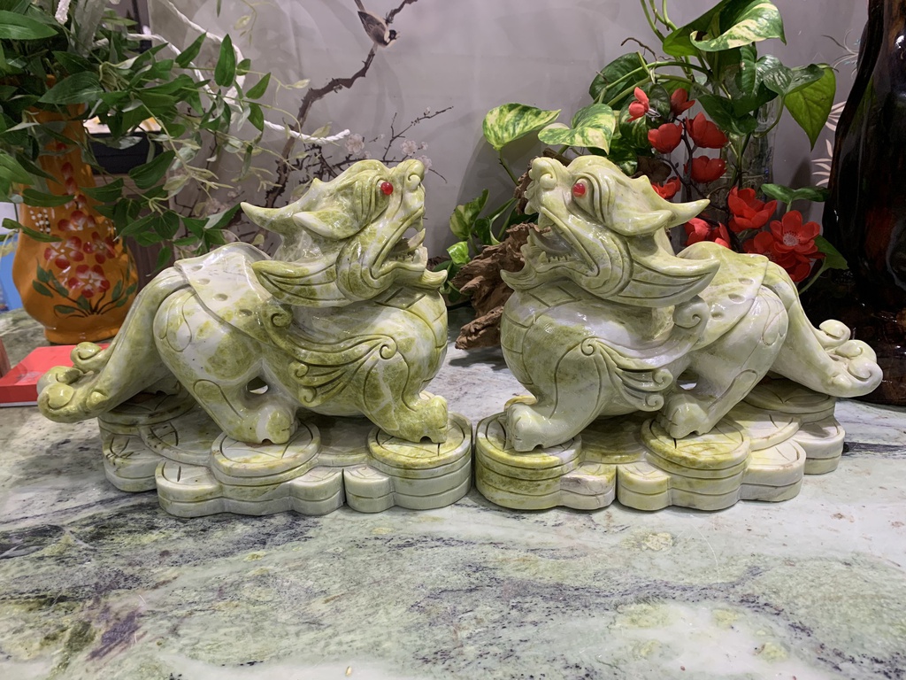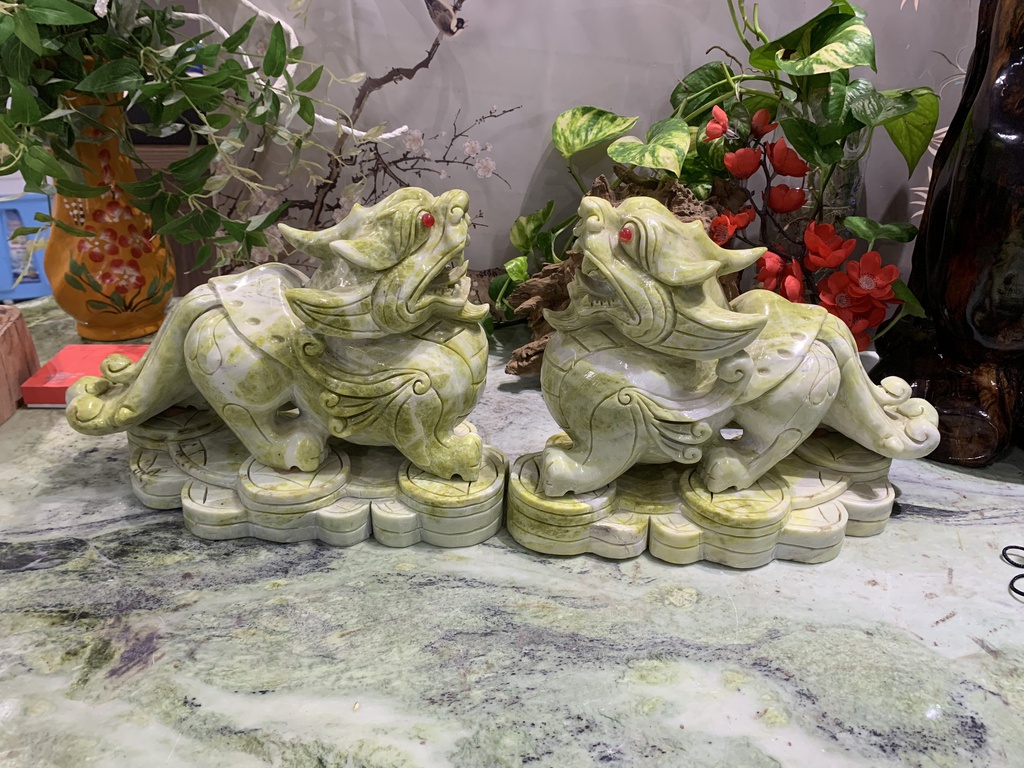 Cặp Tì Hưu Đá Ngọc Serpentine Cao 23,8 Rộng15 Dài 32 (cm) 21kg