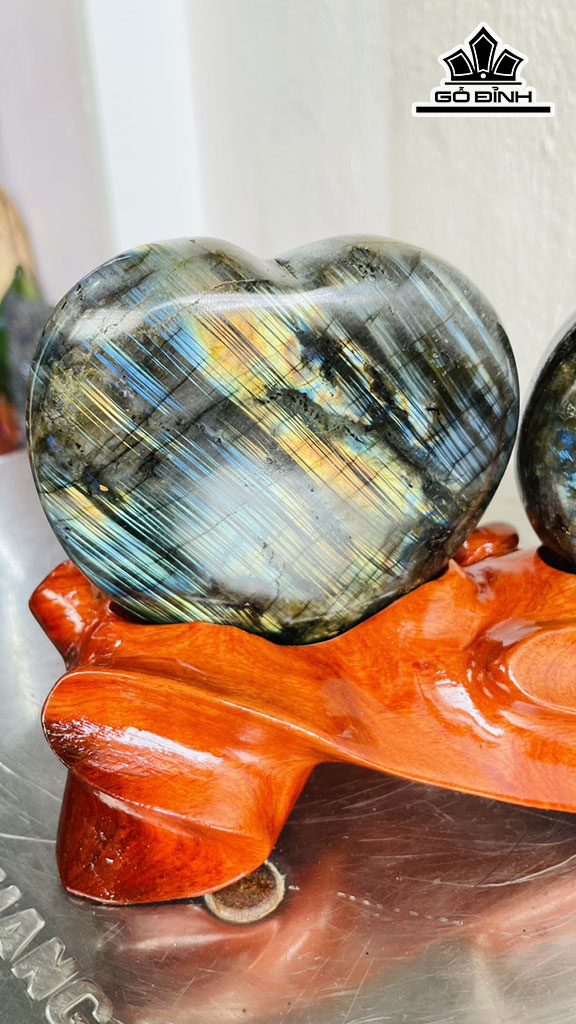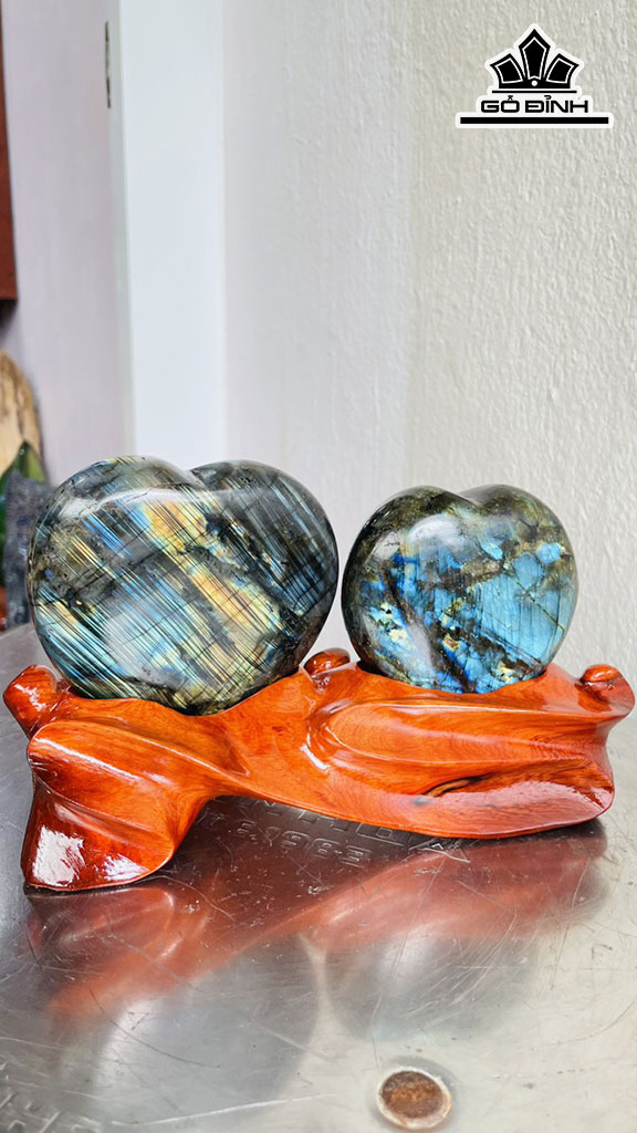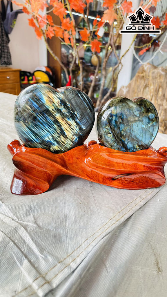 Cặp Trái Tim Đá Xà Cừ (Labradorite)