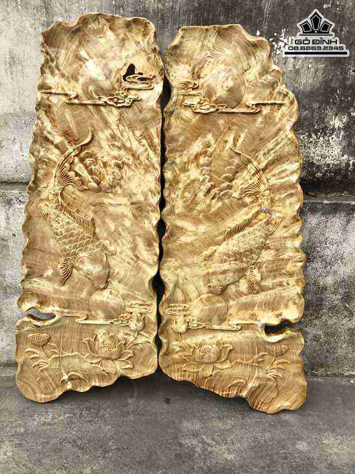 Cặp Tranh Cá Chép Gỗ Nu Nghiến Cao 76 Rộng 31 Dày 2 (cm)