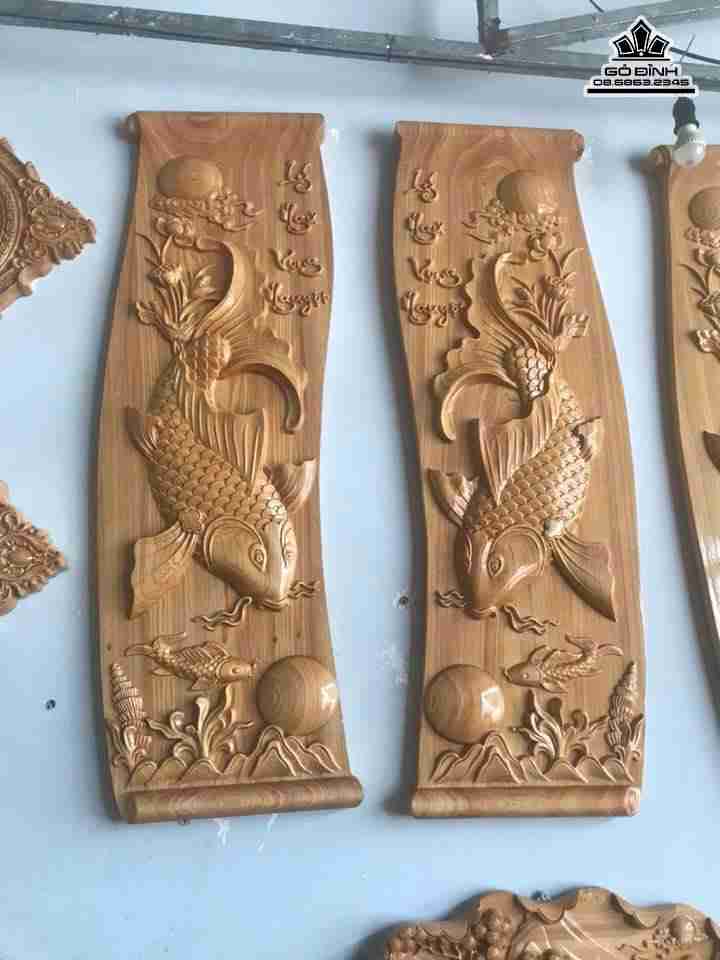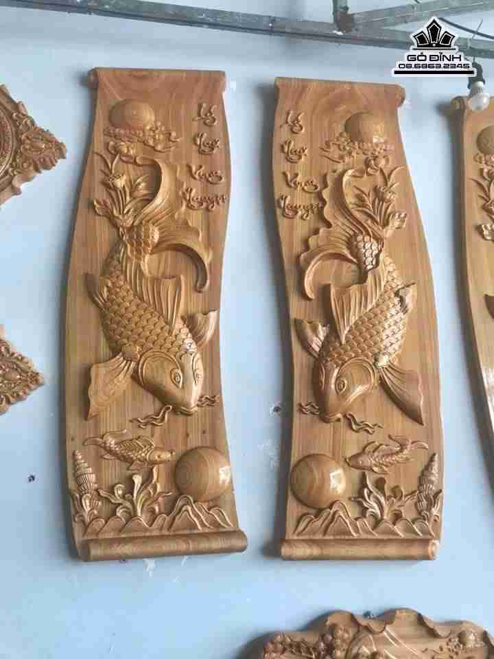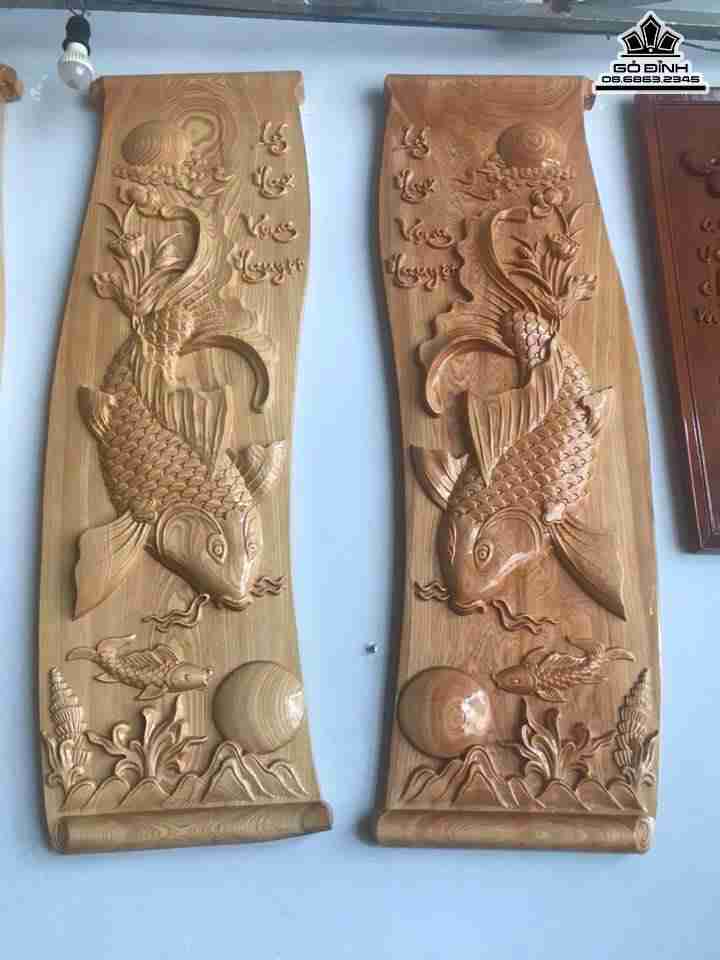 Cặp tranh cá chép gỗ pơ mu rộng 40 dài 120 dày 4 (cm)