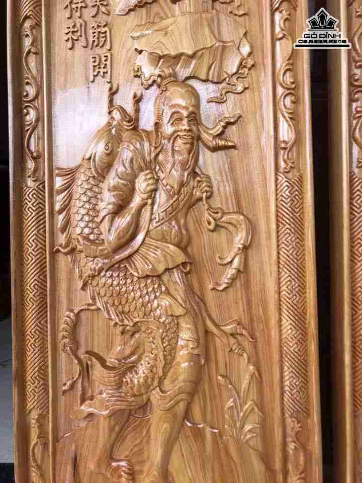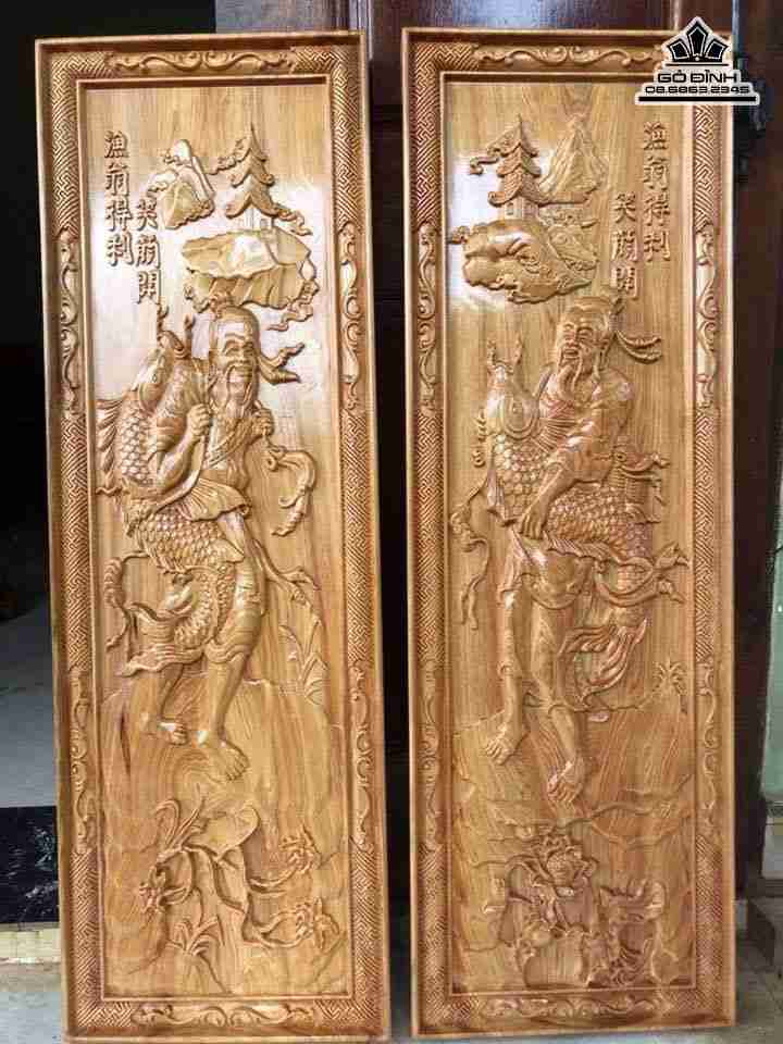 Cặp tranh ngư ông đắc lợi gỗ pơ mu rộng 39 dài 117 dày 4 (cm)