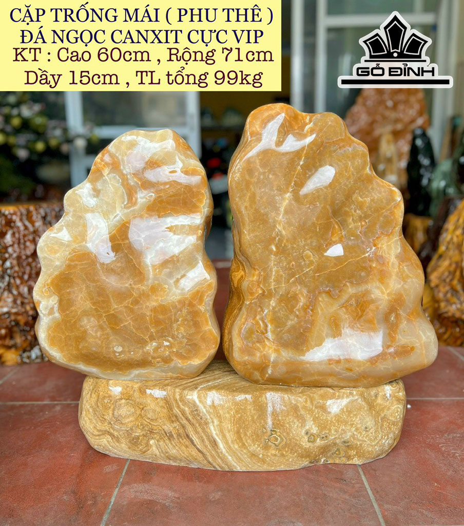 Cặp Trống Mái Đá Canxit Cao 60 Ngang 71 Sâu 15 (cm) 99kg