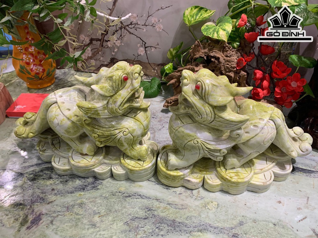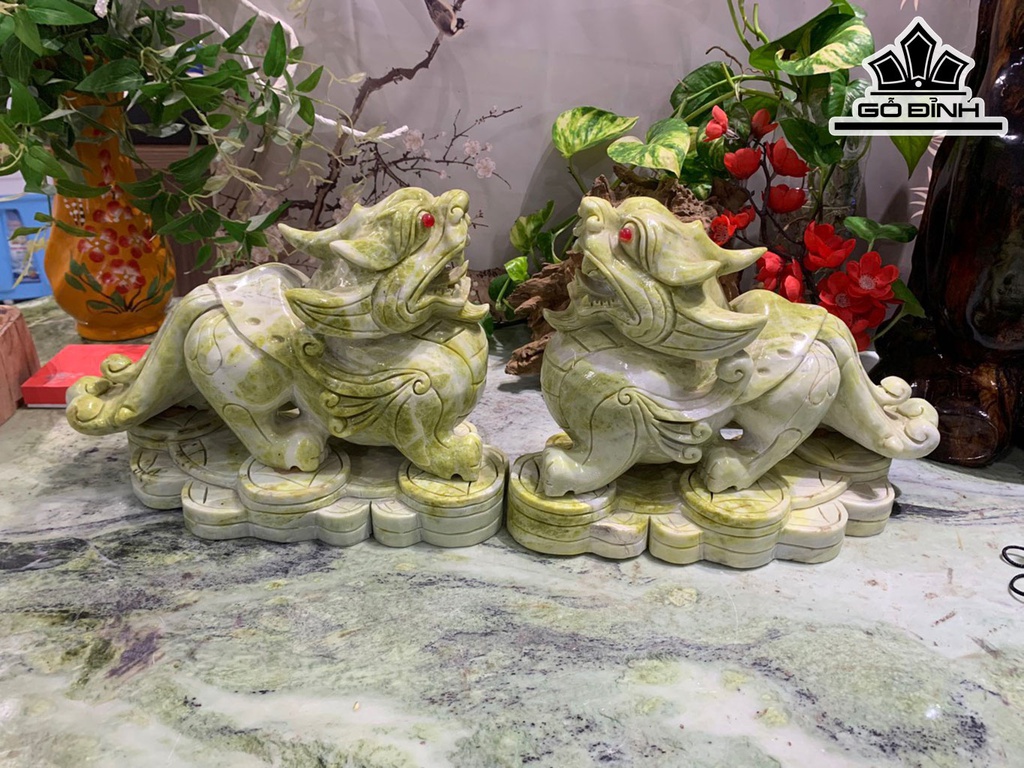Cặp Tỳ Hưu Đá Serpentine Xanh Cao 23,8 Ngang 15 Sâu 32 (cm) 21kg