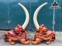 Cặp Tỳ Hưu Gỗ Hương Cao Cả Ngà 60 - Riêng Tượng Cao 27 Ngang 40 Sâu 15 (cm)