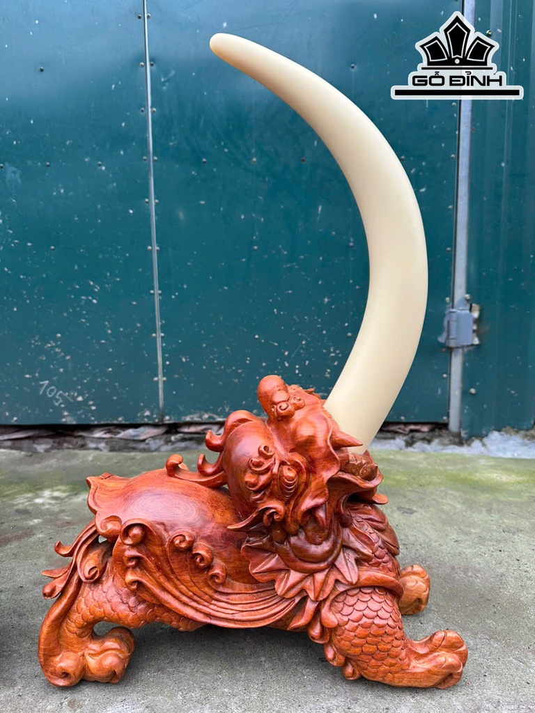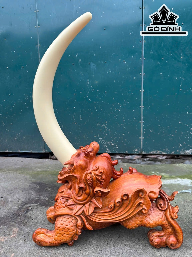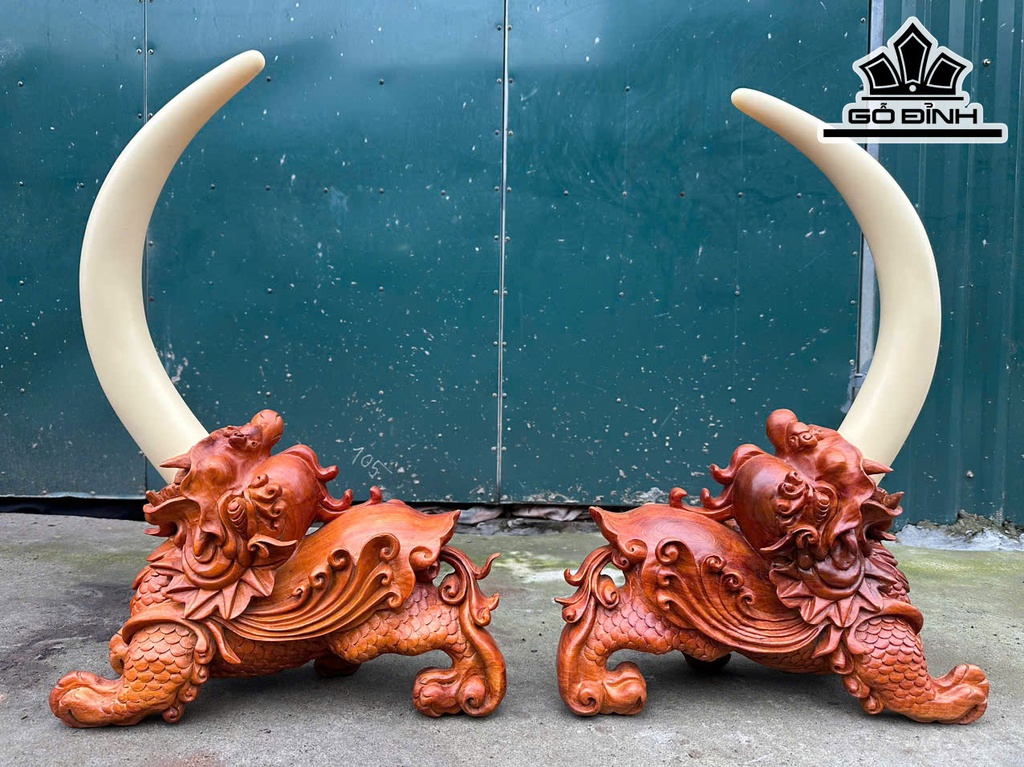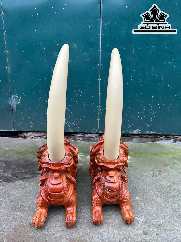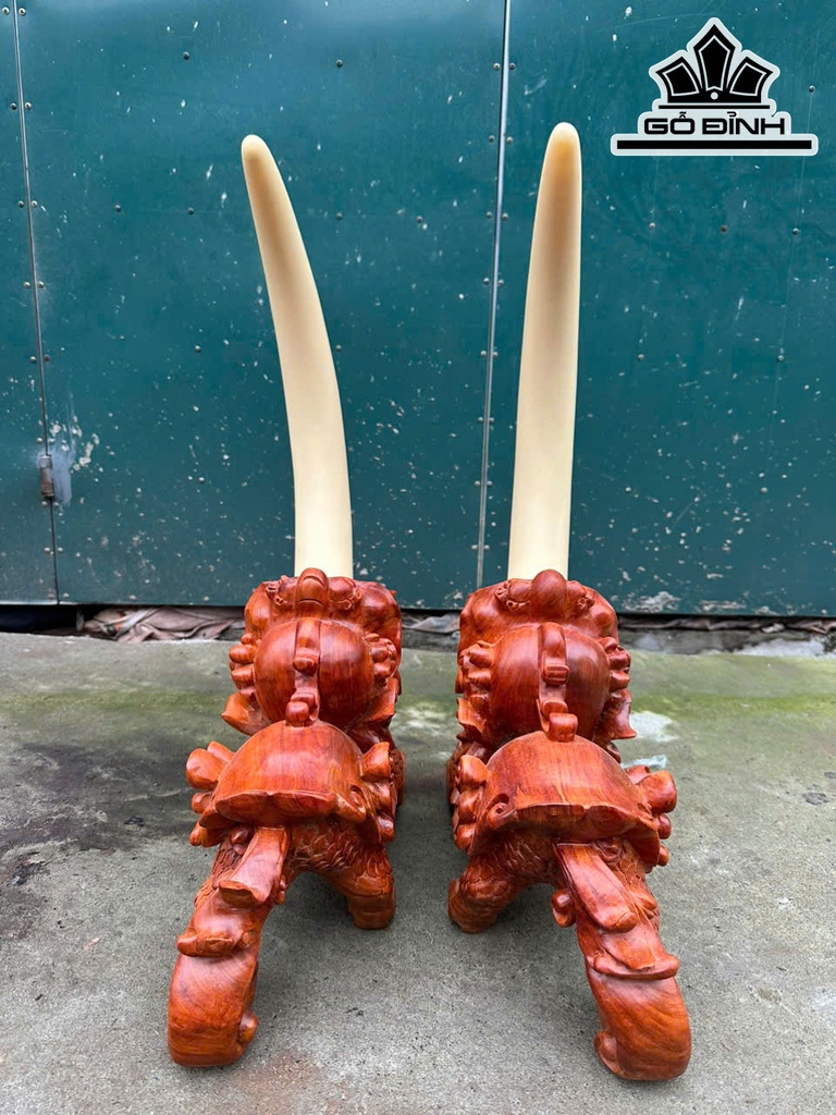 Cặp Tỳ Hưu Gỗ Hương Cao Cả Ngà 60 - Riêng Tượng Cao 27 Ngang 40 Sâu 15 (cm)