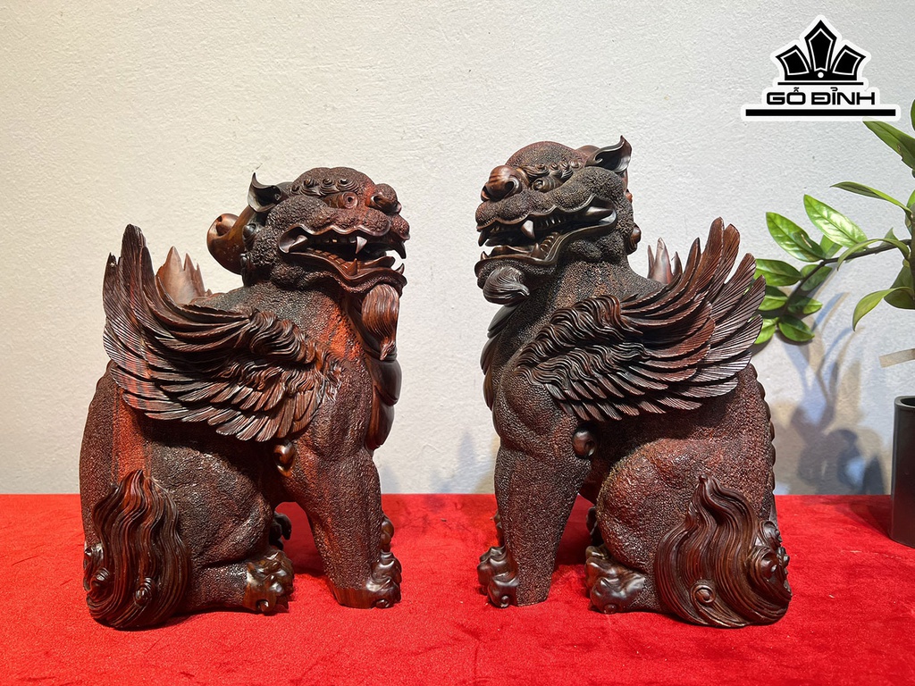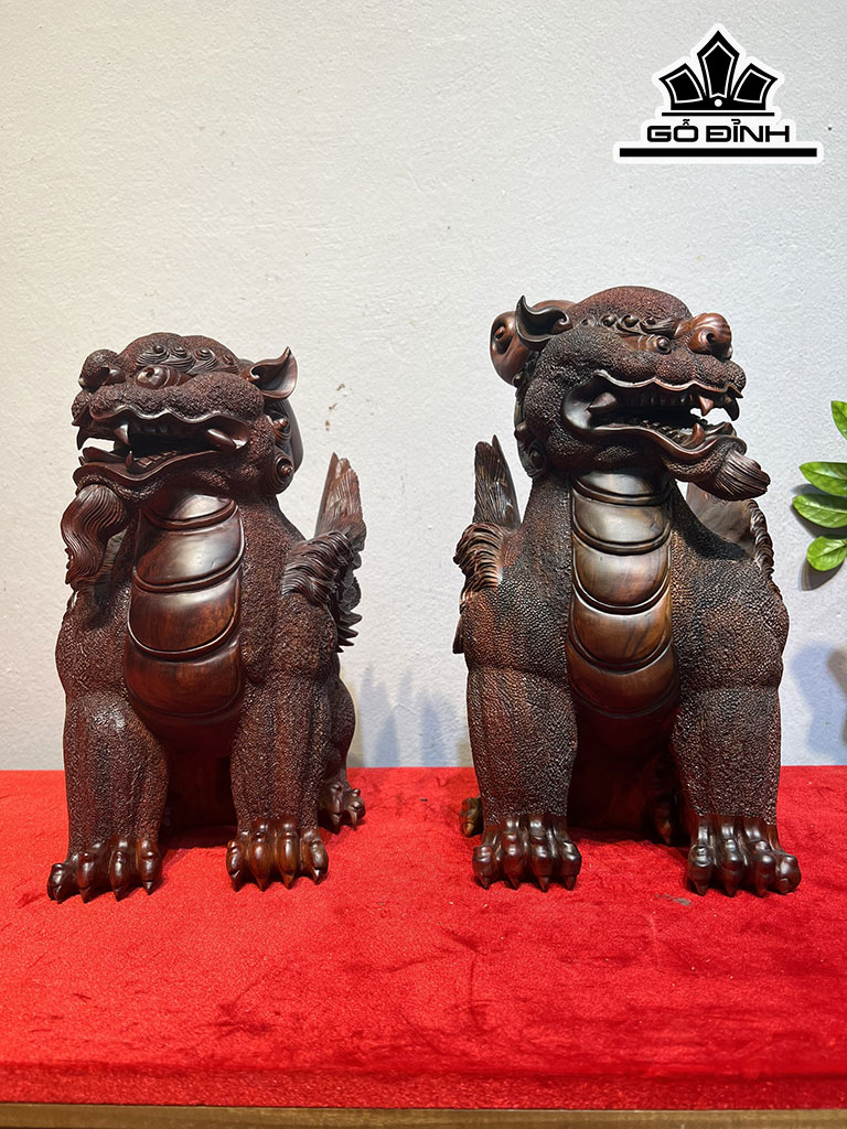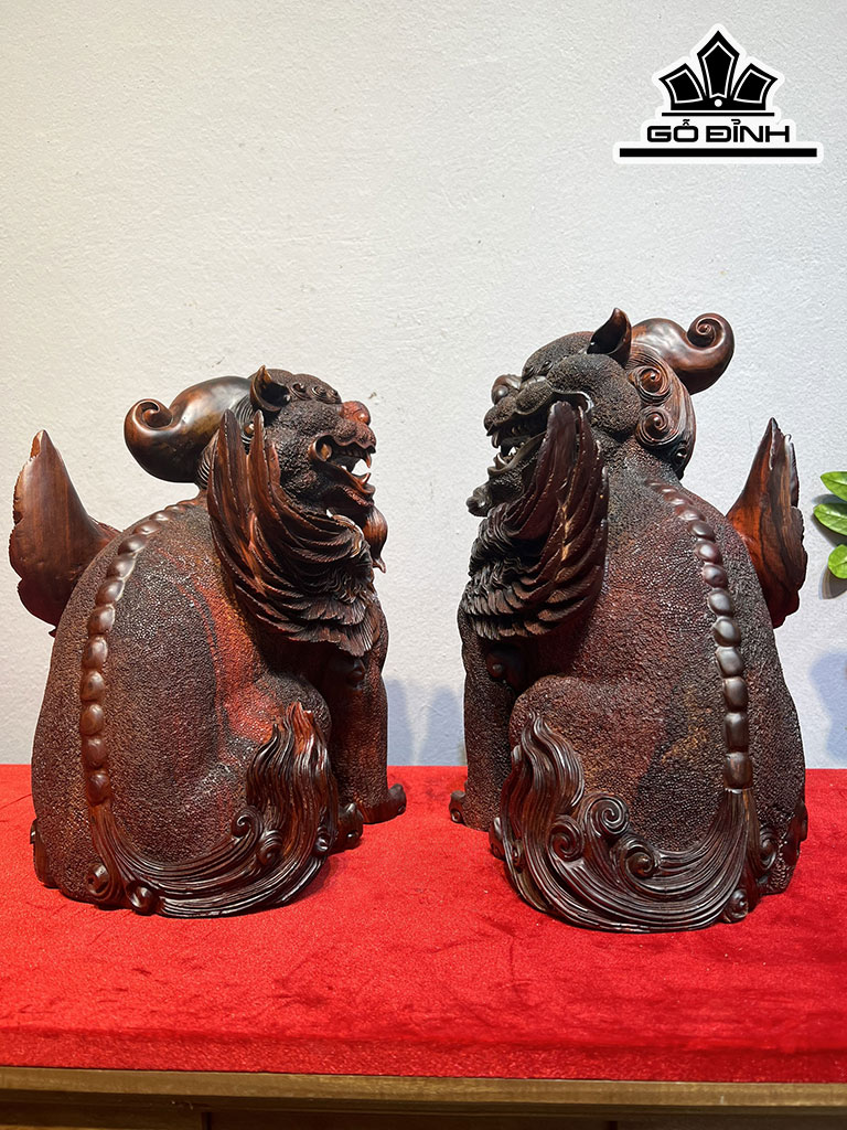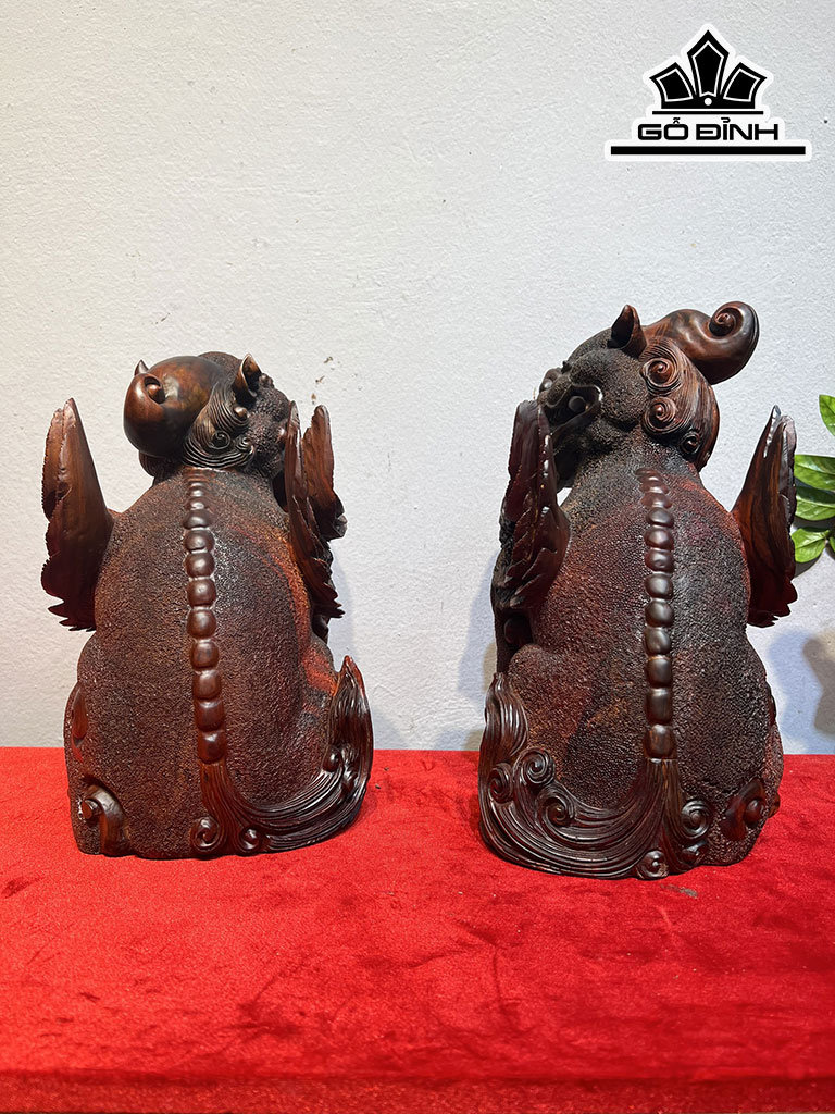 Cặp Tỳ Hưu Gỗ Trắc Cao 28-30 Ngang 21-20 Sâu 17 (cm)